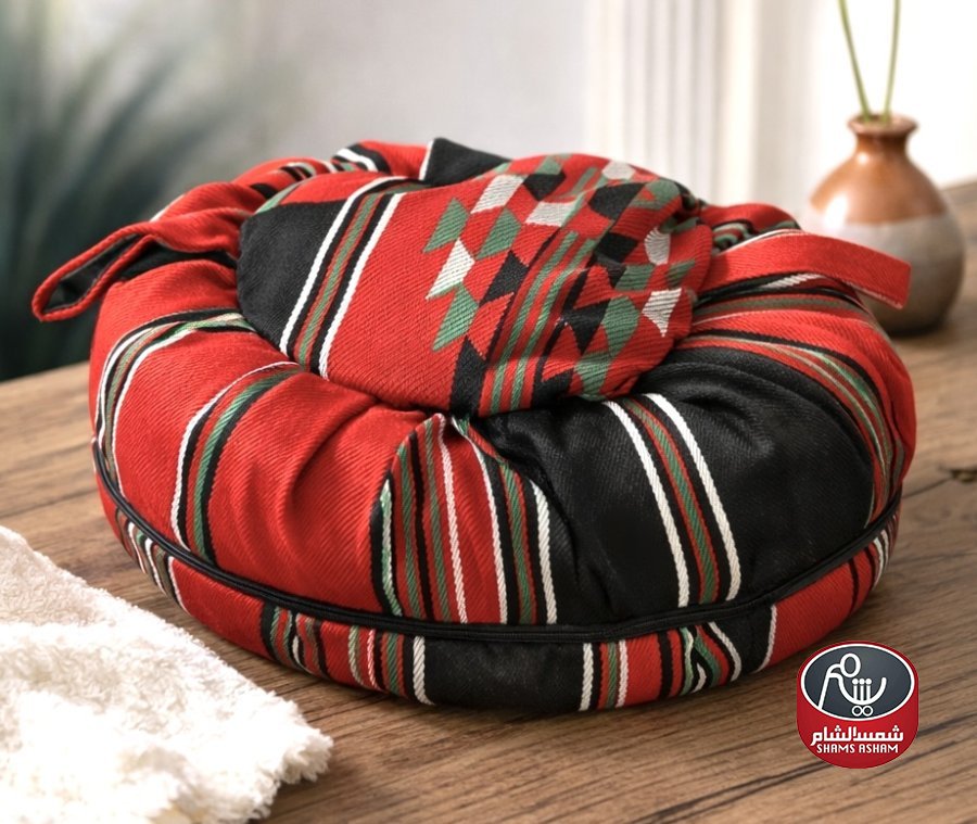 حافظة طعام حرارية بتصميم تراثي أنيق، مثالية لحفظ السخونة أثناء التنقل أو التقديم. مصنوعة من قماش عالي الجودة بنقشة بدوية مميزة، ومبطنة للحفاظ على حرارة الأكل لأطول فترة ممكنة.