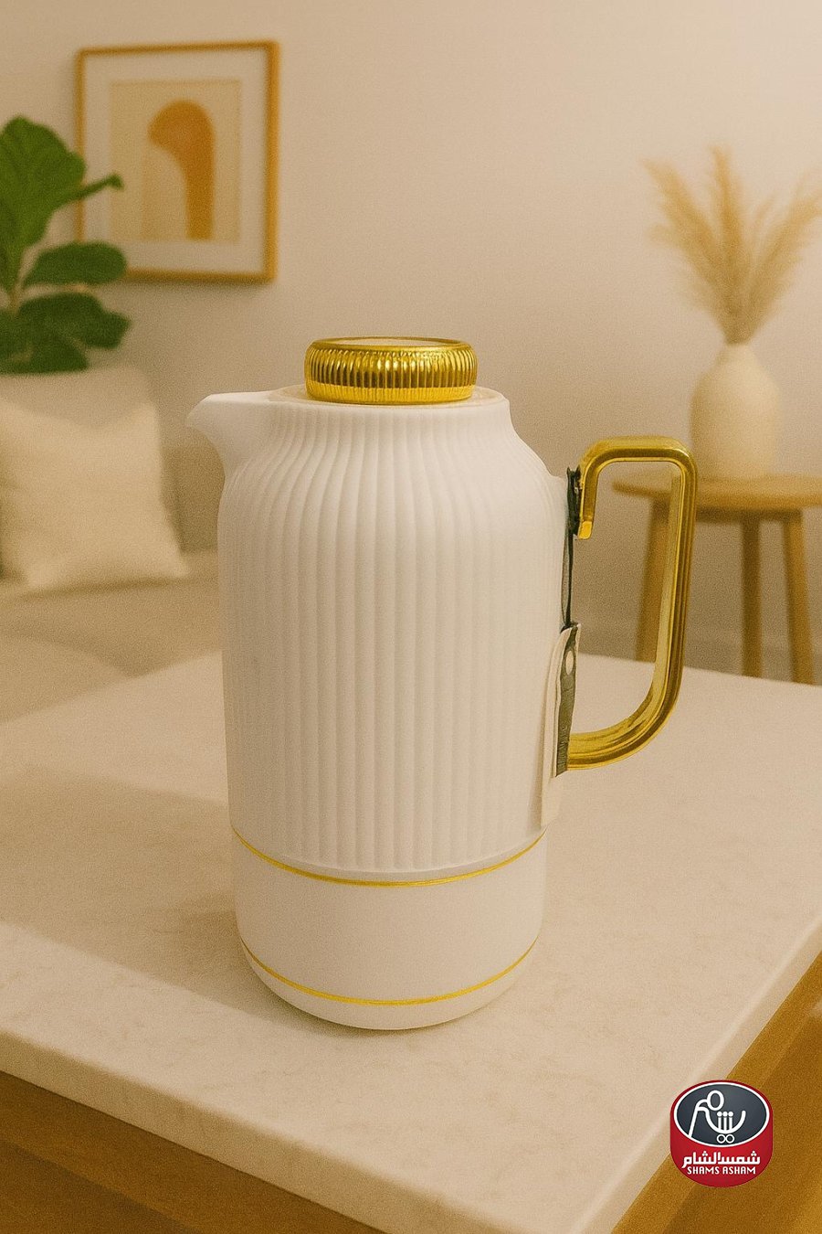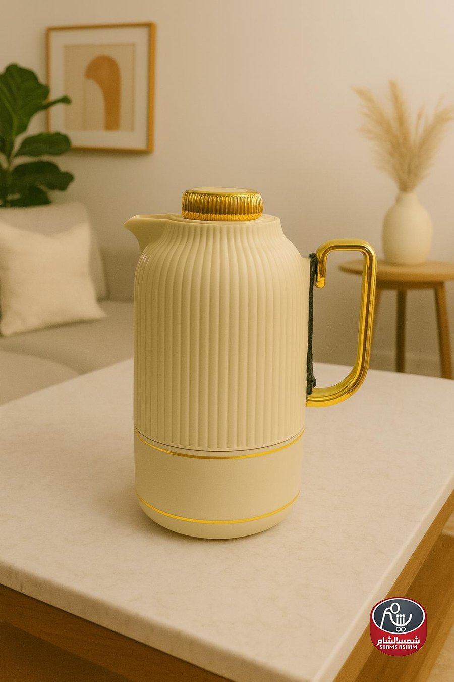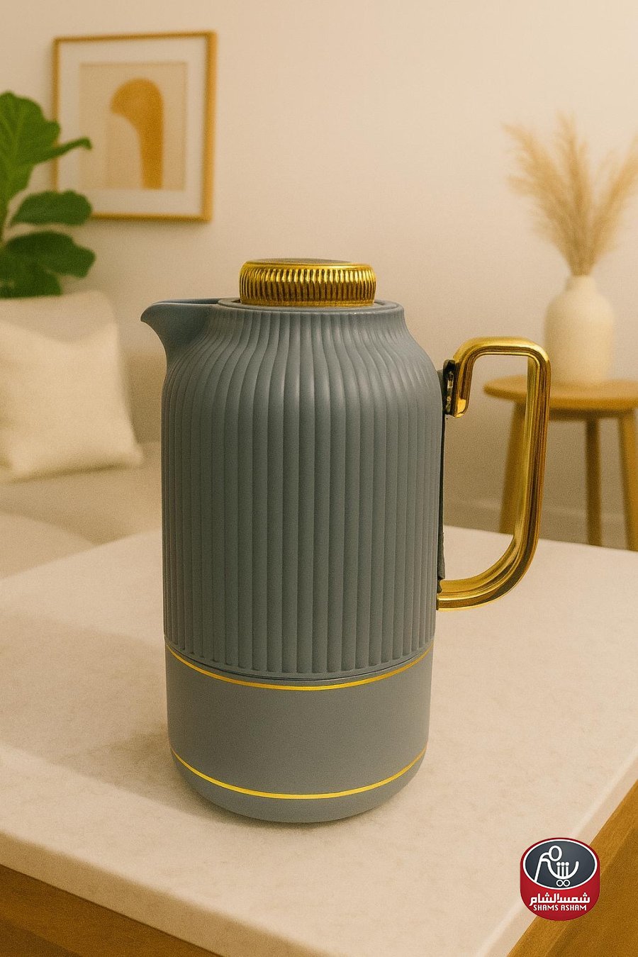 براد (ثيرموس) فاخر بسعة 1 لتر، تصميم عصري أنيق بلمسات ذهبية فاخرة على الغطاء والمقبض، مع جسم مخطط يمنحه مظهراً راقياً ومميزاً. يحافظ على حرارة المشروبات الساخنة أو البرودة لساعات طويلة، مما يجعله مثالي للاستخدام اليومي أو للضيافة. متوفر بعدة ألوان فخمة: أبيض × ذهبي، رمادي × ذهبي، سكري × ذهبي، ليضيف لمسة من الأناقة والتميز إلى طاولتك
