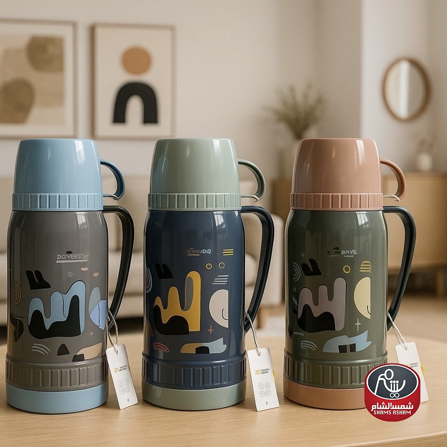 ثيرموس عملي بتصميم عصري وألوان أنيقة، يحافظ على حرارة المشروبات لفترات طويلة، متوفر بحجمين 0.45 لتر مناسب للاستخدام الشخصي، و1 لتر للاستخدام العائلي أو في الضيافة، ويأتي بثلاثة ألوان مميزة لتناسب جميع الأذواق.