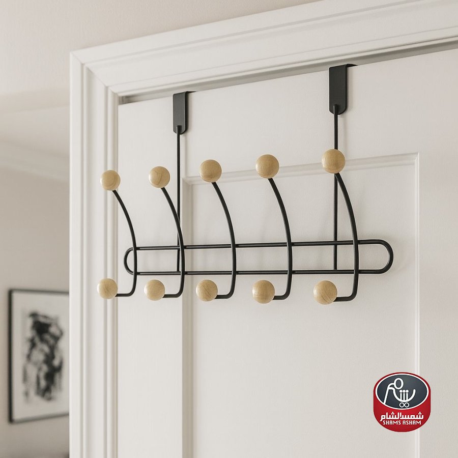 علاقة عملية بتصميم أنيق، مصنوعة من معدن متين باللون الأسود مع كرات خشبية طبيعية تعطي لمسة ديكورية مميزة. تُثبت بسهولة على الأبواب بدون الحاجة للحفر أو التثبيت، وتوفر عدة خطافات لتعليق الملابس، الحقائب أو المناشف بشكل مرتب ومنظم. حل مثالي لتوفير المساحة والحفاظ على أناقة الغرفة
