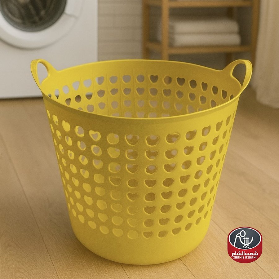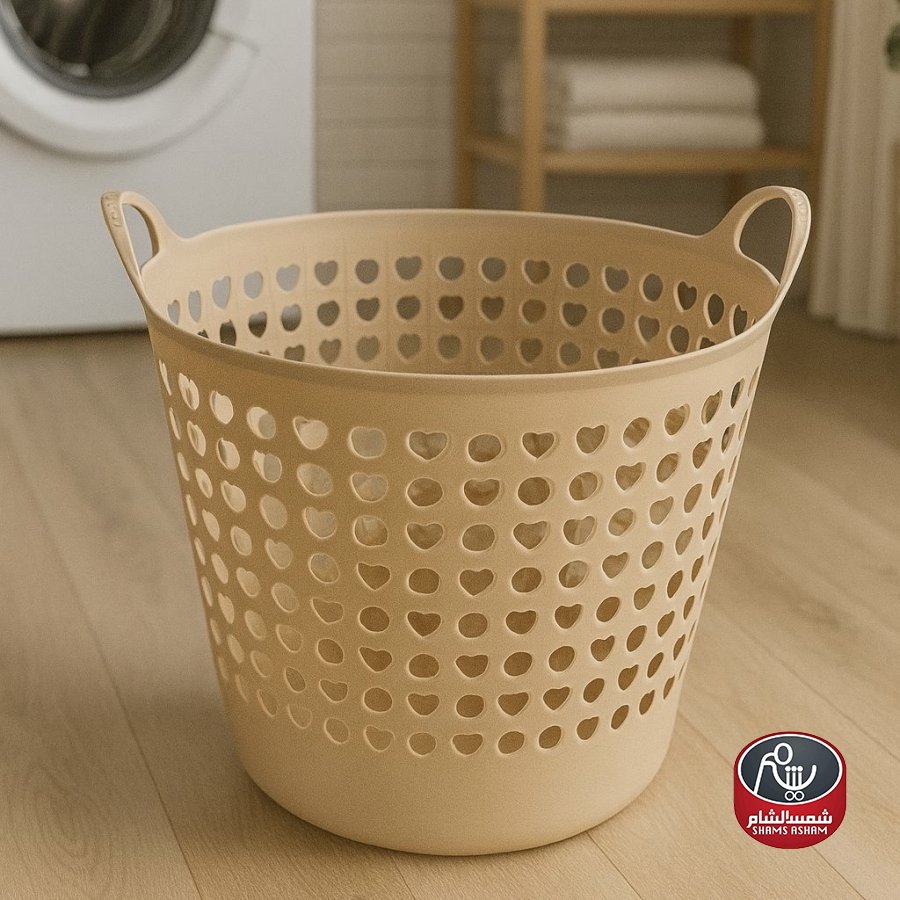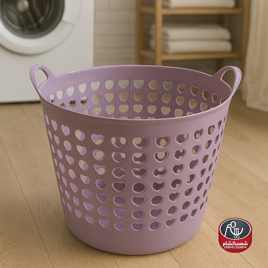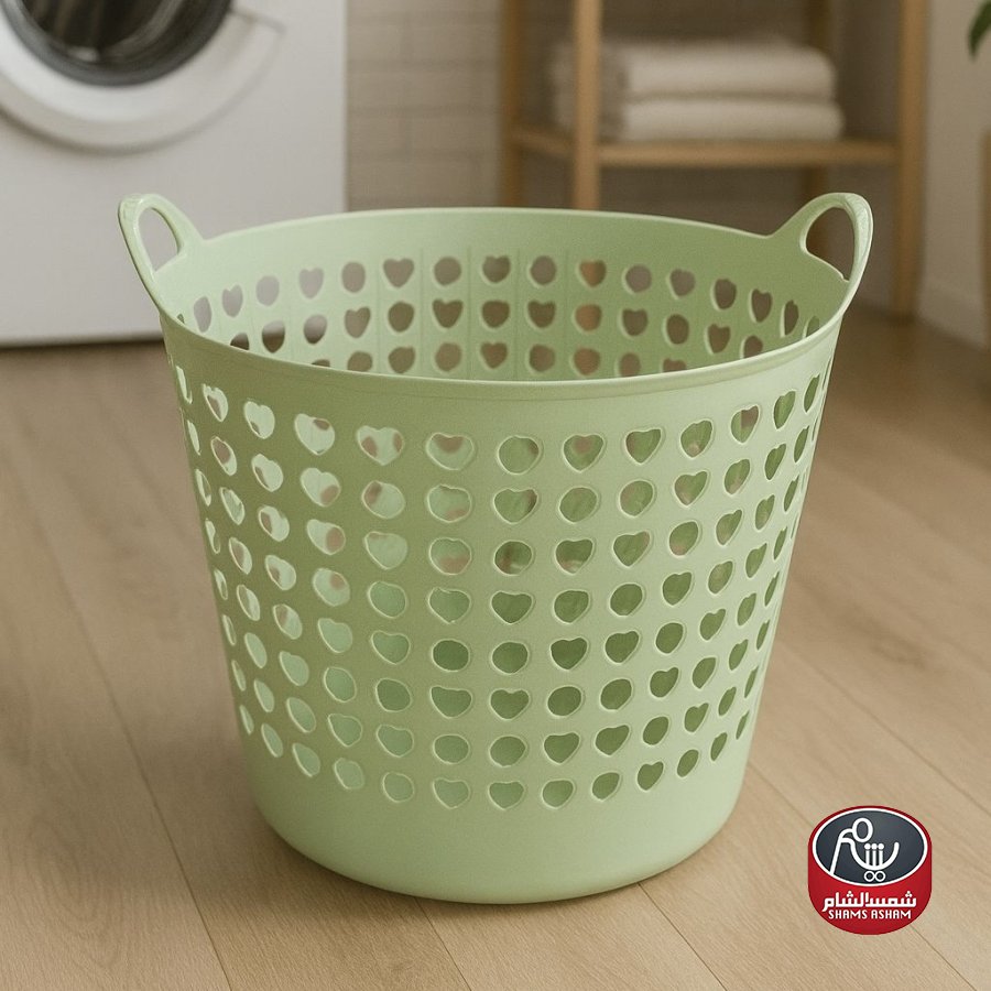 سلة غسيل بلاستيكية بتصميم عصري مثقّب على شكل قلوب، عملية وخفيفة الوزن مع مسكات جانبية لسهولة الحمل، مقاسها 44*44 سم بارتفاع 37 سم، وتتوفر بأربعة ألوان أنيقة هي الأخضر الفاتح، البنفسجي، البيج، والأصفر لتناسب مختلف الأذواق والديكورات.