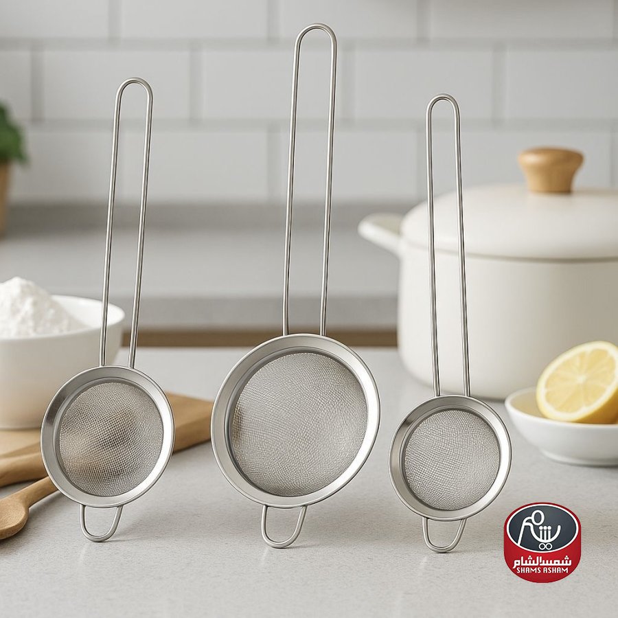 طقم صفايات ستانلس ستيل عملي مكون من 3 قطع بأحجام مختلفة (6 سم، 7 سم، 8 سم) لتلبية احتياجات المطبخ المتنوعة، سواء لتصفية الدقيق أو الأعشاب أو الشاي والعصائر. مصنوع من الستانلس ستيل عالي الجودة المقاوم للصدأ، خفيف الوزن وسهل التنظيف، مع تصميم مريح للمقبض وحواف متينة تضمن الاستخدام الطويل. مناسب للاستخدام اليومي في كل مطبخ ويجمع بين الجودة والعملية بحجم مثالي لتعدد الاستخدامات.