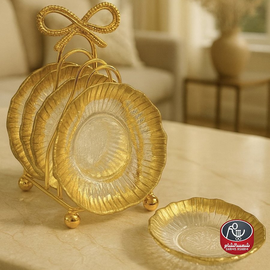 طقم صحون زجاجية صغيرة بتصميم أنيق وحامل معدني