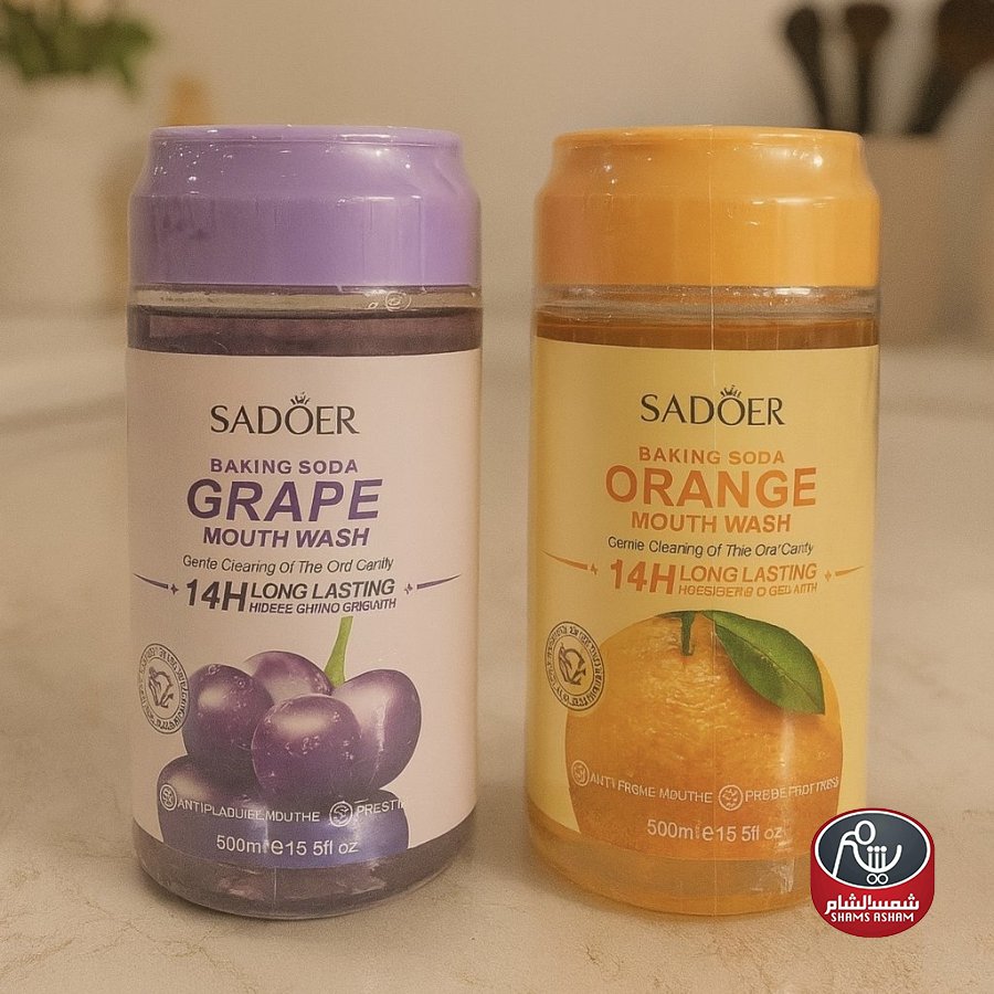 غسول الفم من SADOER بخلاصة صودا الخبز، سعة 500 مل، يمنحك نفسًا منعشًا وحماية طويلة تدوم حتى 14 ساعة. يساعد على تنظيف الفم بلطف، إزالة الروائح الكريهة، والوقاية من البكتيريا المسببة لتسوس الأسنان، مع ترك إحساس بالانتعاش يدوم طويلاً. متوفر بنكهتين منعشتين: العنب و البرتقال لتختار ما يناسب ذوقك. 🦷