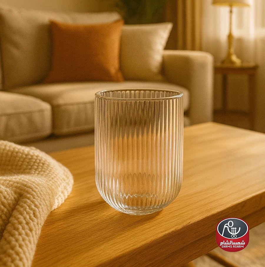 طقم مكوّن من 6 كاسات زجاجية فاخرة بتصميم مخطط طولي أنيق يضفي لمسة عصرية على الطاولة، مصنوع من زجاج شفاف سميك وعالي الجودة، مثالي لتقديم العصير أو الماء في الاستخدام اليومي أو المناسبات الخاصة.