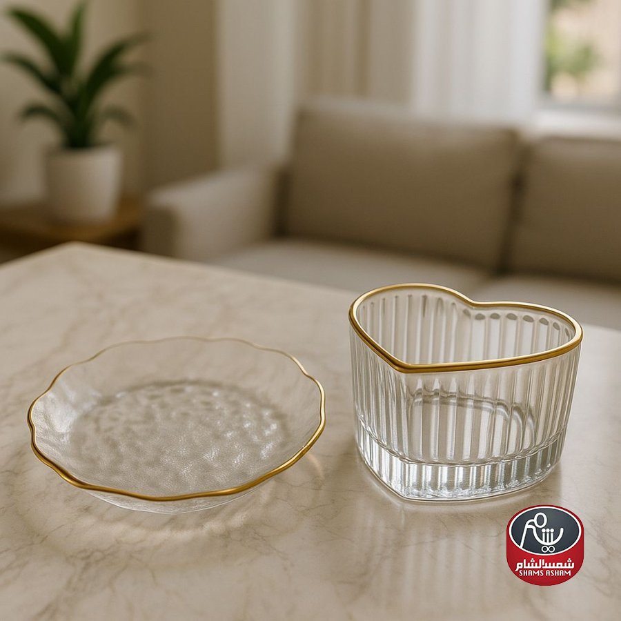 مصنوع من الزجاج الشفاف عالي الجودة مع حزّ ذهبي فاخر يضيف لمسة فخامة وجمال على المائدة.