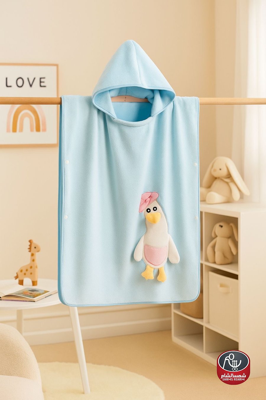 روب أطفال ناعم ودافئ بتصميم لطيف ومميز، مصنوع من خامة فرو خفيفة ومريحة على بشرة الطفل. يتميز بقبعة بأذنين وشكل وجه أرنب مطرز، مع حزام خصر وجيبين أماميين بتطريز جزرة تضيف لمسة مرحة. الطول تقريبي 70 سم — مثالي لارتدائه بعد الاستحمام أو في البيت لتدفئة الطفل بلُطف وأناقة. متوفر بعدة ألوان ناعمة تناسب الأولاد والبنات.