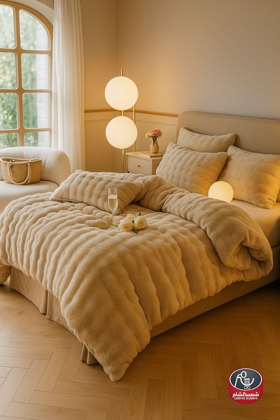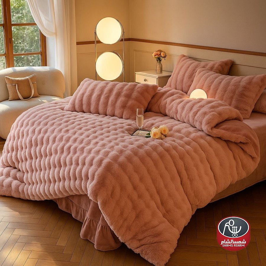 طقم سرير فاخر بتصميم عصري أنيق يمنح الغرفة لمسة من الدفء والفخامة، مصنوع من خامة ناعمة تشبه الفرو الفاخر بنقشة متموجة تضيف مظهرًا دافئًا ومريحًا. يحتوي الطقم على غطاء سرير بحجم 240×220 سم، وغطاء لحاف بقياس 200×200 سم، بالإضافة إلى كيسَي وسادة بحجم 70×50+25 سم، لتجربة نوم مريحة وأنيقة في آنٍ واحد. تصميمه العصري يجمع بين النعومة الفائقة والمظهر الفخم، مما يجعله مثاليًا لأجواء الشتاء الباردة ولمحبي التفاصيل الراقية في ديكور غرفة النوم.