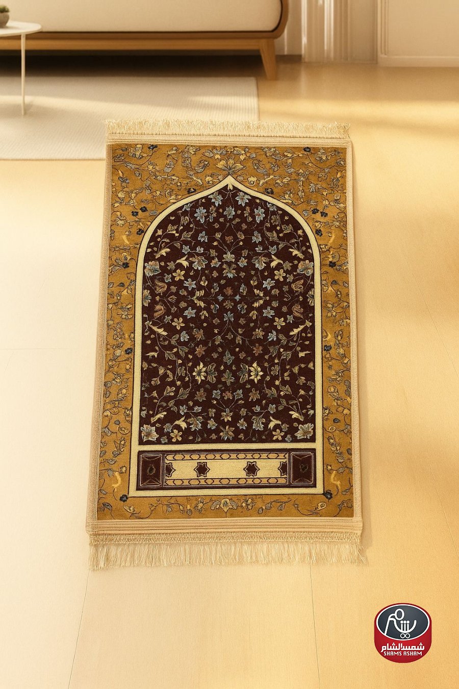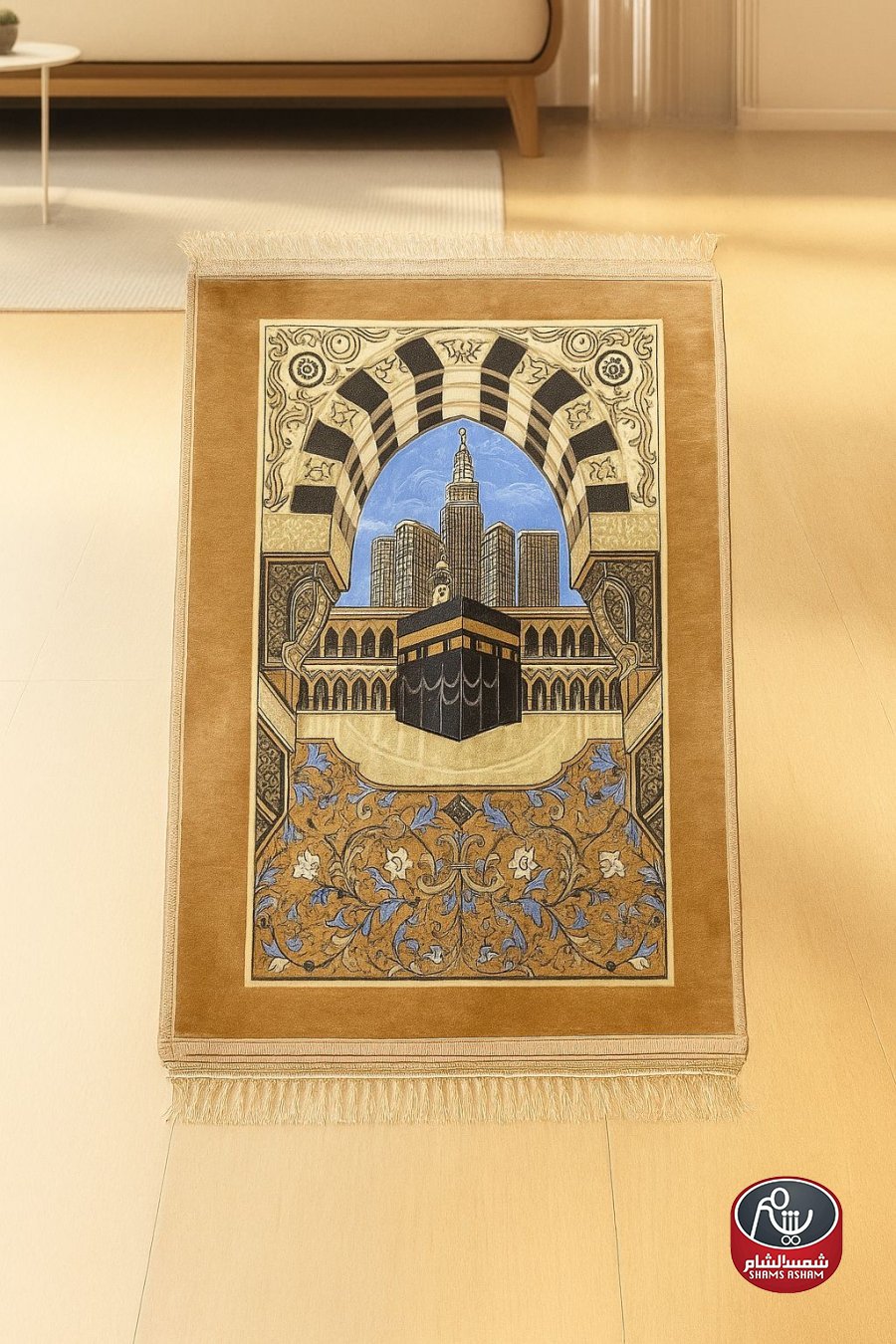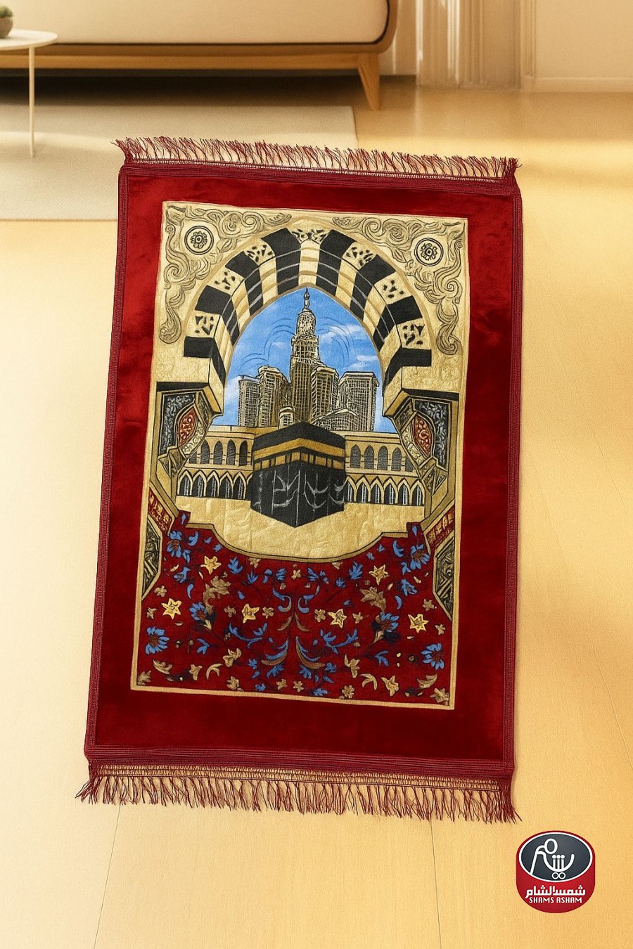 سجادة صلاة أنيقة مصنوعة من المخمل الثقيل الناعم، تتميز بملمس فاخر وسماكة مريحة تمنحك راحة تامة أثناء السجود. مزينة بتفاصيل وزخارف جميلة تضيف لمسة فخامة للمكان، وتأتي بشرّابات أنيقة على الأطراف لإطلالة متكاملة.
