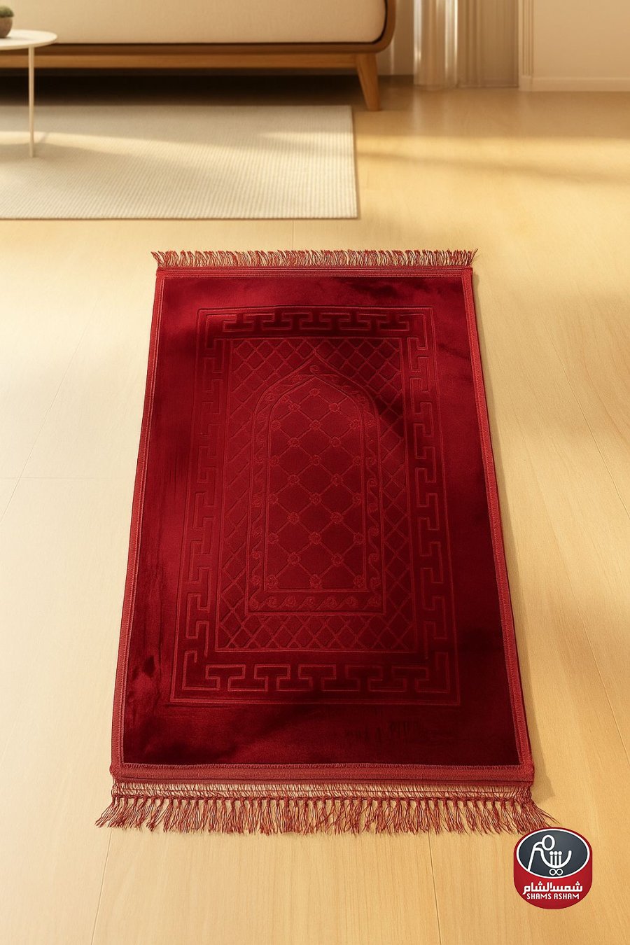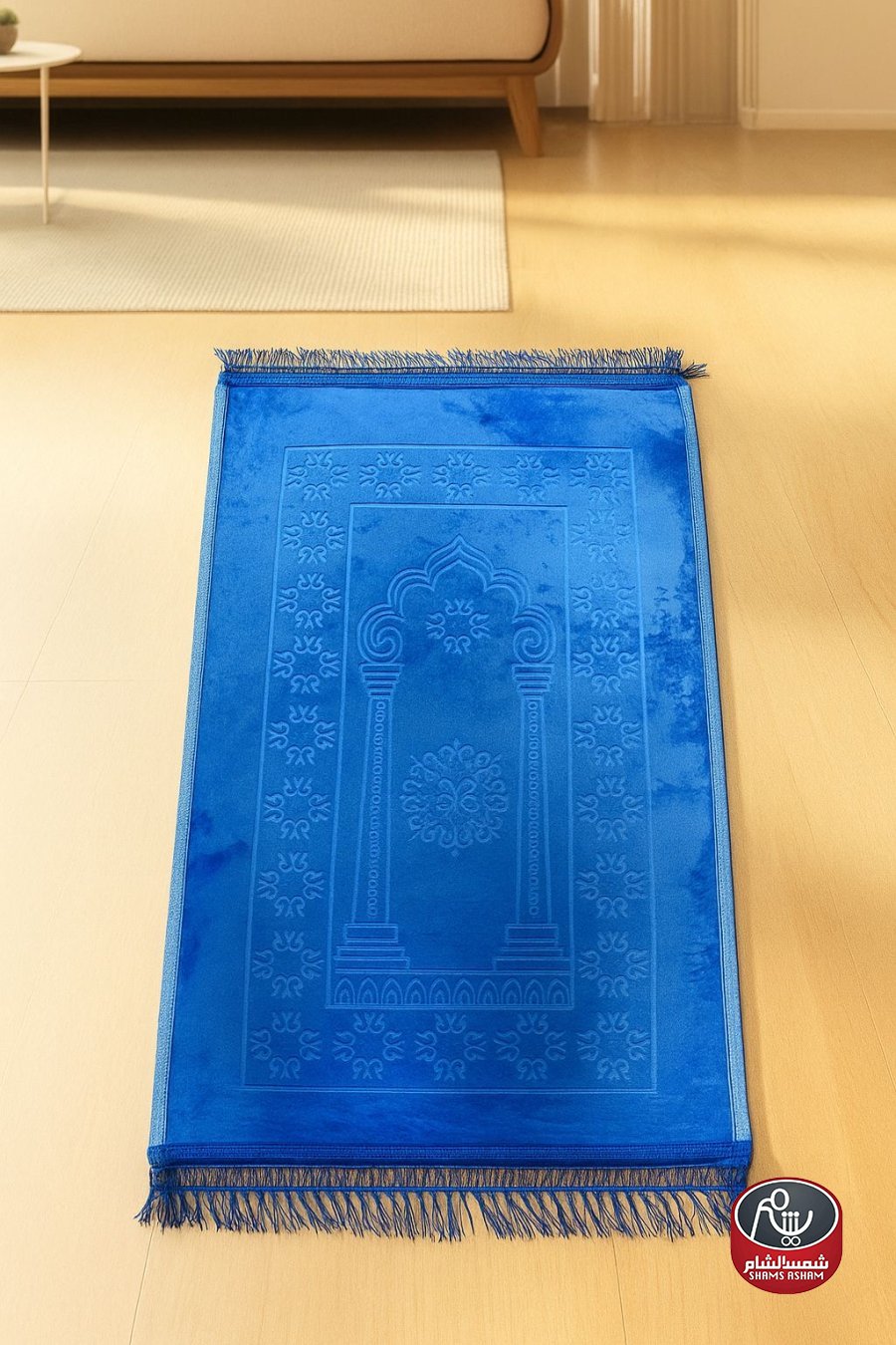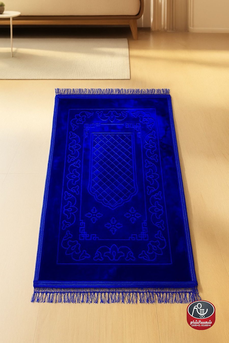 سجادة صلاة بتصميم أنيق مصنوعة من المخمل الثقيل الناعم، تمنحك راحة مثالية أثناء السجود بملمسها الفاخر وسماكتها المريحة. تتميز بنقشة بارزة مستوحاة من الزخارف الإسلامية الكلاسيكية تمنحها طابعاً فخماً يناسب كل ذوق. مزودة بشرّابات أنيقة على الأطراف لمظهر متكامل وجذاب.