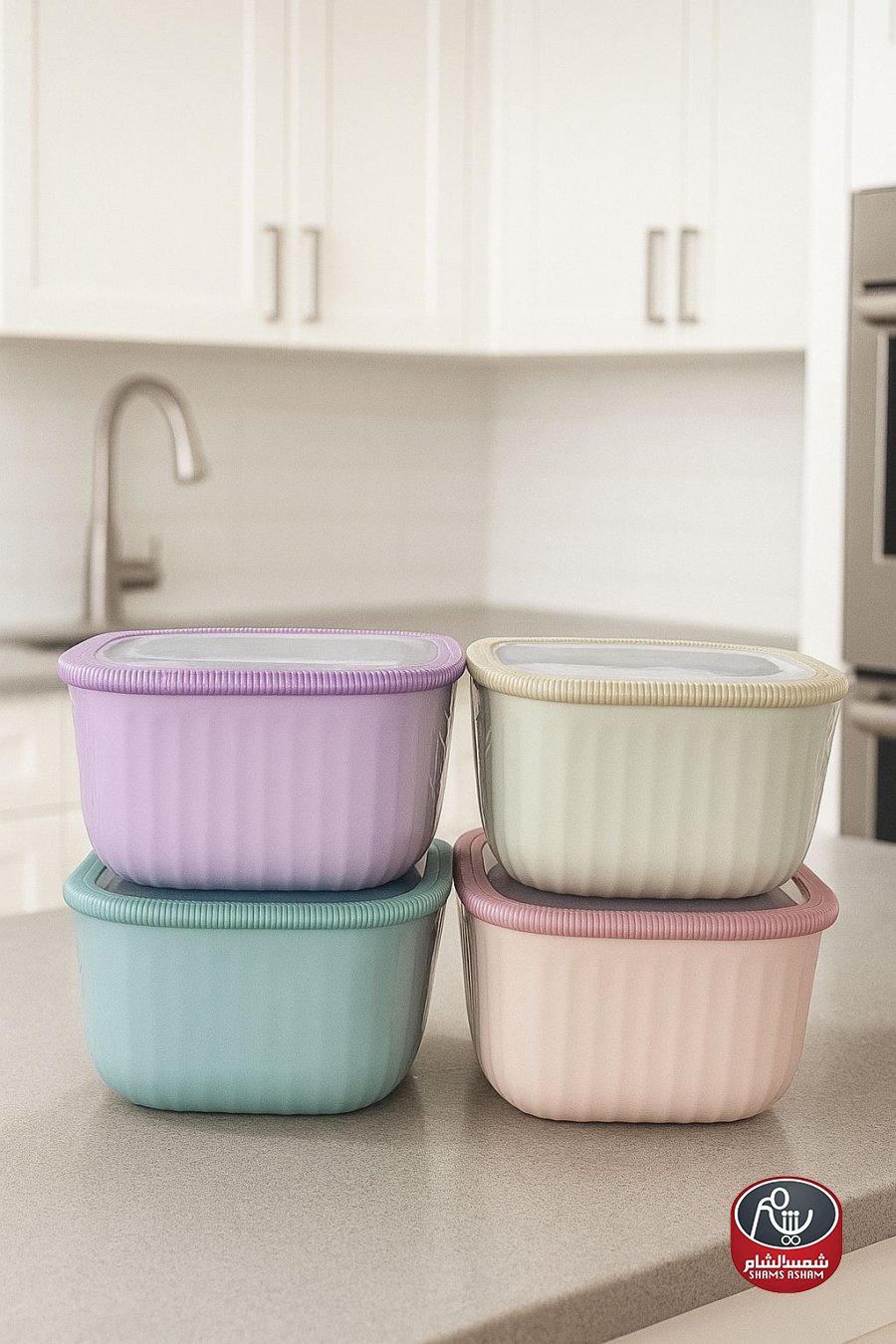 طقم علب حفظ طعام سيليكون مكون من 4 قطع بسعات تقريبية 500 مل، 1 لتر، 1.8 لتر، و 3 لتر، مثالي لتخزين الطعام في الثلاجة أو الفريزر وحفظ بقايا الوجبات والخضار والفواكه والشوربات والصوصات وغيرها. يتميز بخامة سيليكون آمنة ومرنة عالية الجودة لا تمتص الروائح وتحافظ على نكهة الطعام، مع إغلاق محكم يمنع التسريب ويحافظ على الطزاجة لأطول فترة. العلب قابلة للاستخدام في الميكرويف بدون الغطاء، وسهلة الغسيل يدوياً أو في غسالة الصحون، ويمكن ترتيبها داخل بعضها عند التخزين لتوفير المساحة. خيار أنيق وعملي لكل مطبخ يبحث عن تنظيم صحي ومرتب للطعام