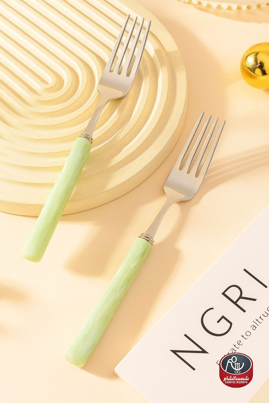 شوك طعام أنيقة بمقبض بلون رخامي عصري، مصنوعة من ستانلس ستيل متين مقاوم للصدأ، ومناسبة للاستخدام اليومي أو الضيافة. تصميم المقبض مريح وسهل المسك، تضيف لمسة جمالية لسفرة الطعام وتتناغم مع مختلف أطقم السفرة. الطقم متوفر بعدة ألوان راقية لتناسب ذوقك، ويمكن غسله يدويًا أو في غسالة الصحون.