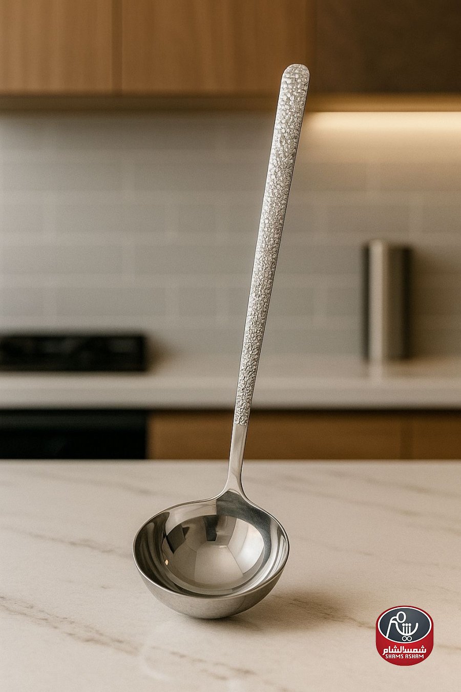 مغرفة ستانلس ستيل أصلية وثقيلة بجودة ممتازة، نوعها مغرفة شوربة (Ladle) ذات رأس عميق ومقبض طويل بنقشة محفورة تعطي ثباتاً وشكلاً فاخراً. مخصّصة لسكب الشوربة والمرق واليخنات والصلصات بسهولة دون انسكاب، وتساعد على نقل كميات مناسبة من السوائل بفضل عمقها وشكلها المنحني. مقاومة للحرارة وللغسيل المتكرر ولا تتأثر بالجلاي، وتعتبر أداة أساسية وراقية لكل مطبخ