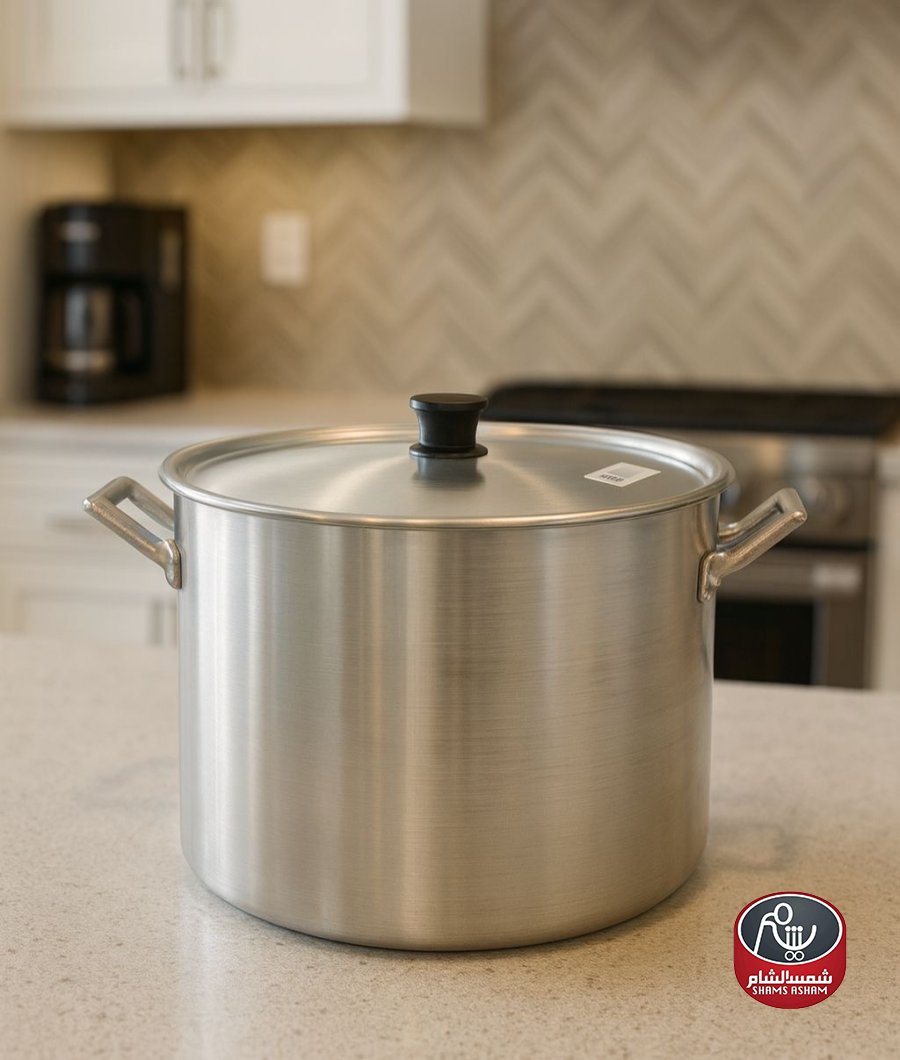 طنجرة ألمنيوم ثقيل بجودة عالية، مصنوعة من خامة متينة تتحمل الحرارة العالية وتوزّعها بشكل متساوٍ، مع غطاء محكم ومقابض جانبية ثابتة لسهولة الحمل والاستخدام. مناسبة للطهي اليومي ولتحضير الكميات الكبيرة بكل راحة، وتعد خيار مثالي للمطابخ المنزلية والمطاعم. متوفرة بمقاسات متعددة: 30 سم، 32 سم، 34 سم، 36 سم، 38 سم، 40 سم