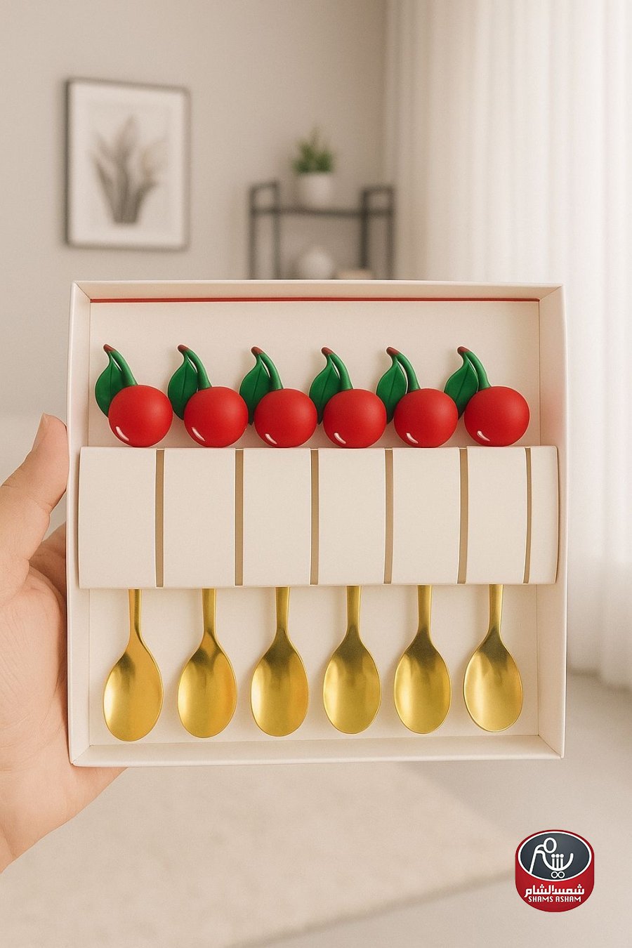 طقم مميز مكوّن من 6 معالق صغيرة بلون ذهبي أنيق، مصنوع من ستانلس ستيل عالي الجودة ومزوّد بمقابض على شكل كرز لطابع لطيف وجذاب. مناسب لتقديم القهوة والحلويات والآيس كريم والاستخدام اليومي، ويأتي ضمن علبة مرتّبة جاهزة للتقديم أو الإهداء