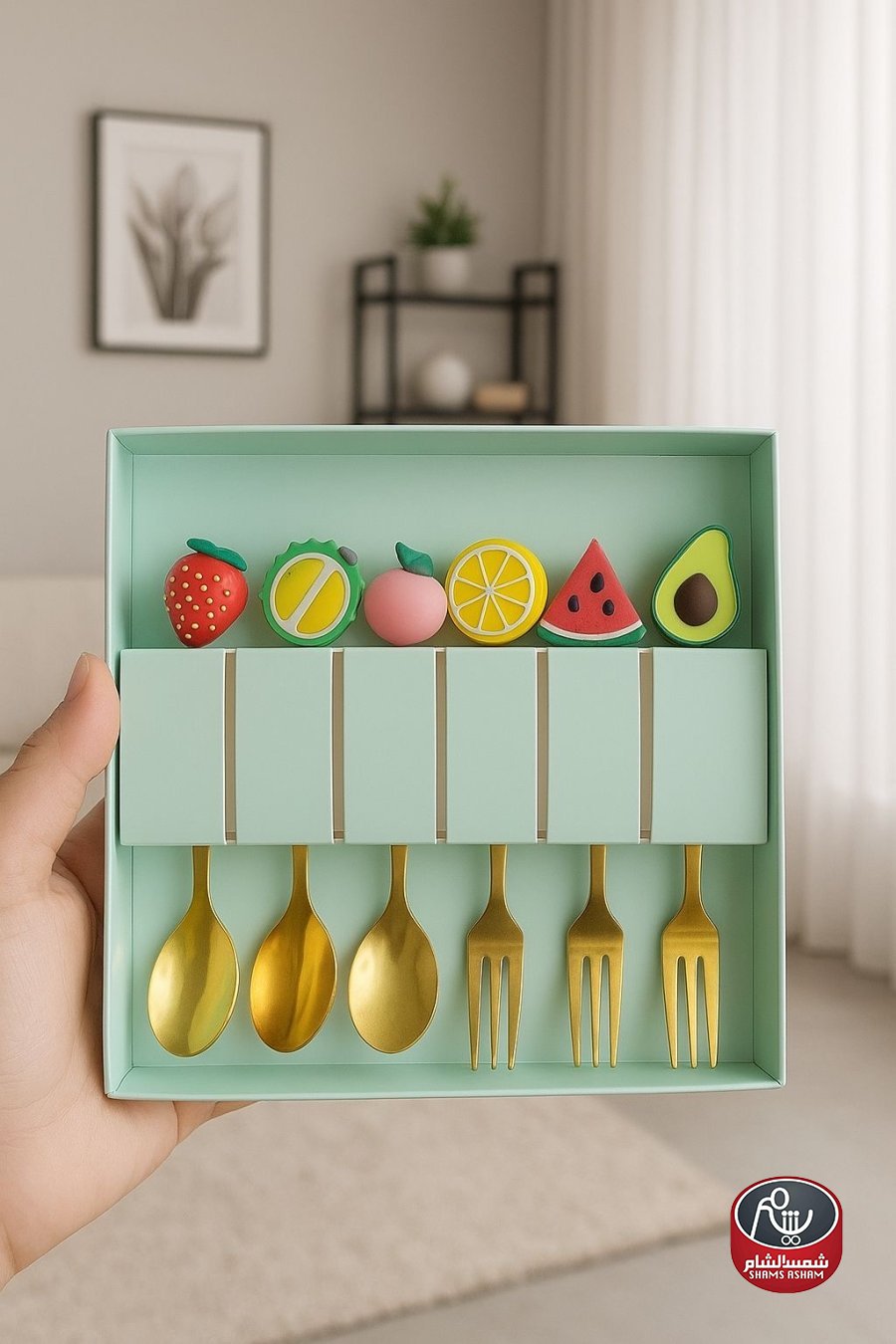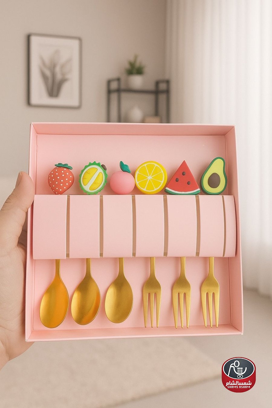 طقم أنيق مكوّن من 3 معالق و3 شوك بتصميم عصري ولمسة فاخرة باللون الذهبي، يجي داخل علبة هدية مرتّبة وأنيقة، ومزوّد بقطع زخرفية على شكل فواكه تضيف لمسة لطيفة ومميّزة. مناسب لتقديم الحلويات والفواكه وللاستخدام اليومي أو كهدية مميزة