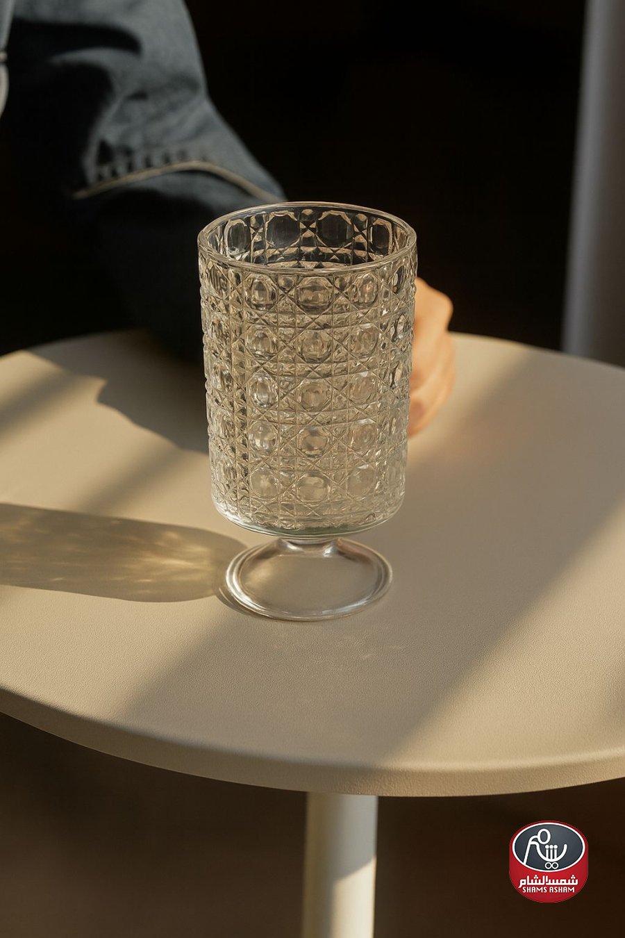 طقم ٦ كاسات عصير بتصميم فاخر على قاعدة أنيقة، مصنوع من زجاج عالي الجودة بنقشة بارزة تمنح لمسة جمالية مميزة وتضيف فخامة لطاولة الضيافة. الكاسات تأتي بسعة مثالية للعصائر والمشروبات الباردة، وتتمتع بثبات ممتاز بفضل القاعدة العريضة، كما أنها سهلة التنظيف ومناسبة للاستخدام اليومي والضيافة