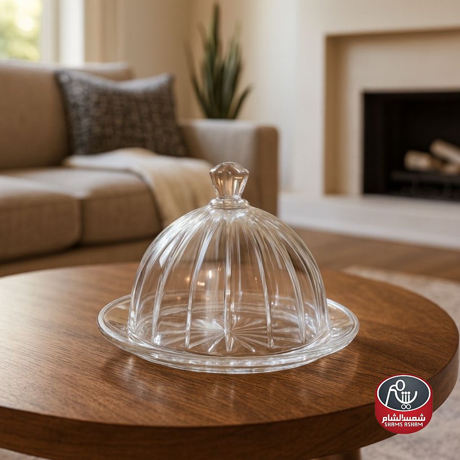 مضيفة زجاجية أنيقة مع غطاء شفاف بالكامل، مصممة بشكل راقٍ يبرز جمال الضيافة ويحافظ على نظافة وتقديم الحلويات والتمور والمعجنات بطريقة مرتبة. تأتي بقطر 20 سم وارتفاع 13 سم، مصنوعة من زجاج فخم وثقيل بنقشة طولية تمنحها لمسة كلاسيكية، مناسبة للسفرة والضيافة اليومية أو المناسبات، وتضيف جمالاً عملياً لأي طاولة تقديم