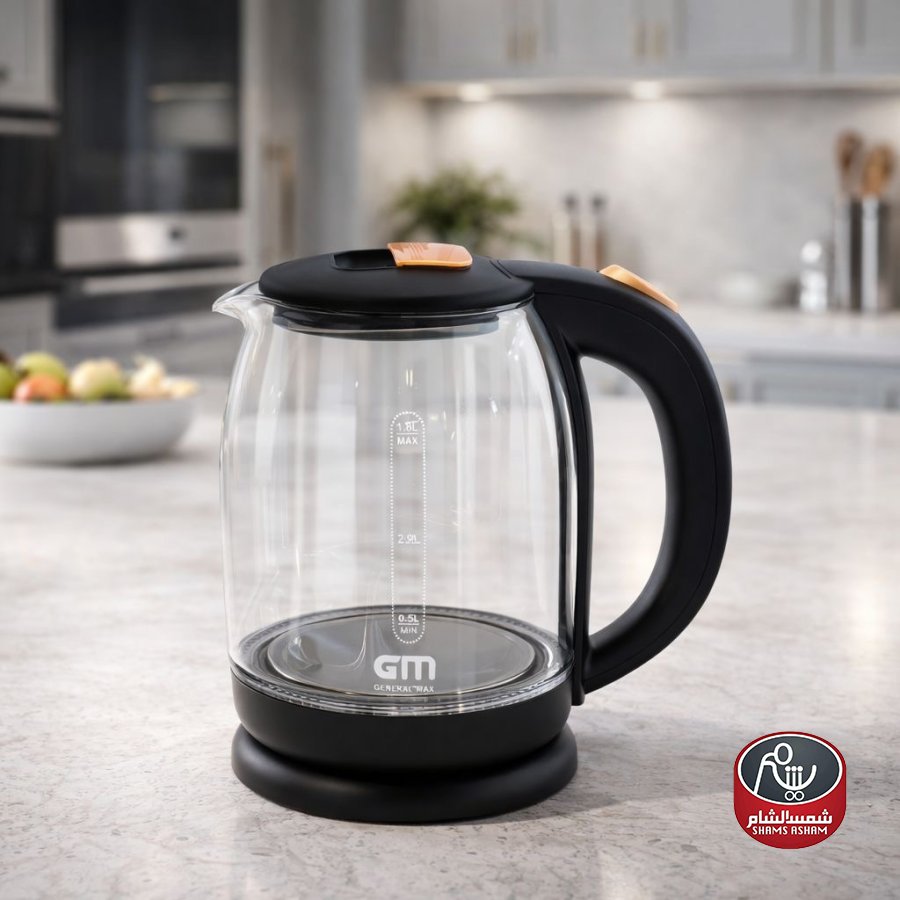 سخان ( كمكم ) زجاجيةمن General-Max بتصميم عصري أنيق يناسب المطابخ الحديثة، مصنوع من زجاج شفاف عالي الجودة يتيح رؤية مستوى الماء بوضوح مع تدريج قياس دقيق حتى 1.8 لتر. تتميز بقاعدة دوران 360° لسهولة الاستخدام، ومقبض مريح مع زر تشغيل عملي، بالإضافة إلى إضاءة LED أنيقة أثناء الغليان تضيف لمسة جمالية مميزة. تعمل بقدرة 1500 واط لغلي الماء بسرعة وكفاءة، مع نظام حماية من التشغيل الجاف لضمان الأمان، وهي مصنوعة من مواد صحية وآمنة للاستخدام اليومي، سهلة التنظيف ومثالية لتحضير الشاي، القهوة والمشروبات الساخنة بكل سهولة