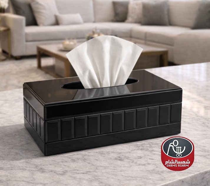 علبة مناديل بتصميم أسود أنيق يناسب الديكور العصري والكلاسيكي.