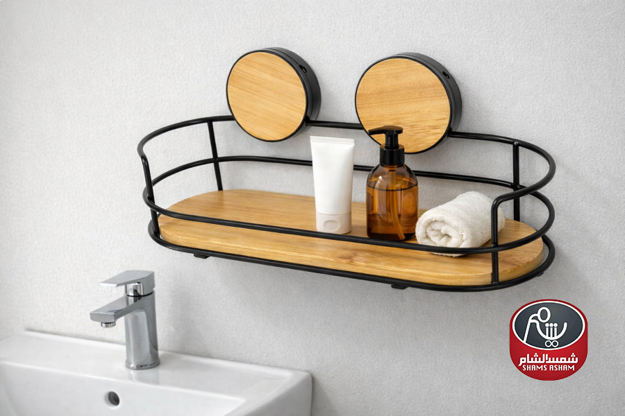 رف أنيق وعملي يثبت بدون حفر على الأسطح الملساء مثل السيراميك والزجاج.