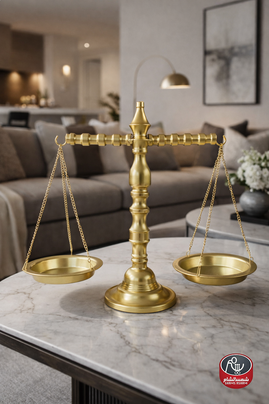 ميزان ديكوري أنيق بتصميم ذهبي فاخر يضيف لمسة فخامة لأي طاولة أو مساحة داخل المنزل. مصنوع بعناية ليكون قطعة ديكور لافتة تناسب غرف الجلوس والمكاتب والرفوف.