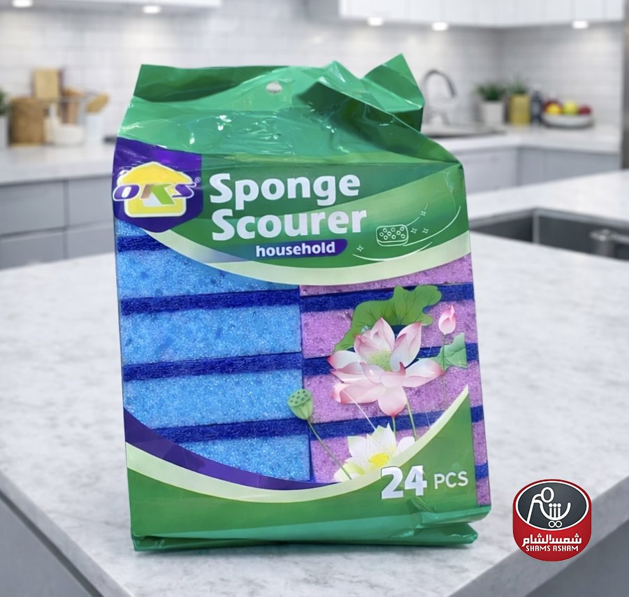ليف جلي OKS متعددة الألوان، قوية وفعّالة لتنظيف الأواني والأسطح اليومية بسهولة، تساعد على إزالة الدهون والأوساخ دون خدش، مناسبة للاستخدام المنزلي، العبوة تحتوي على 24 قطعة