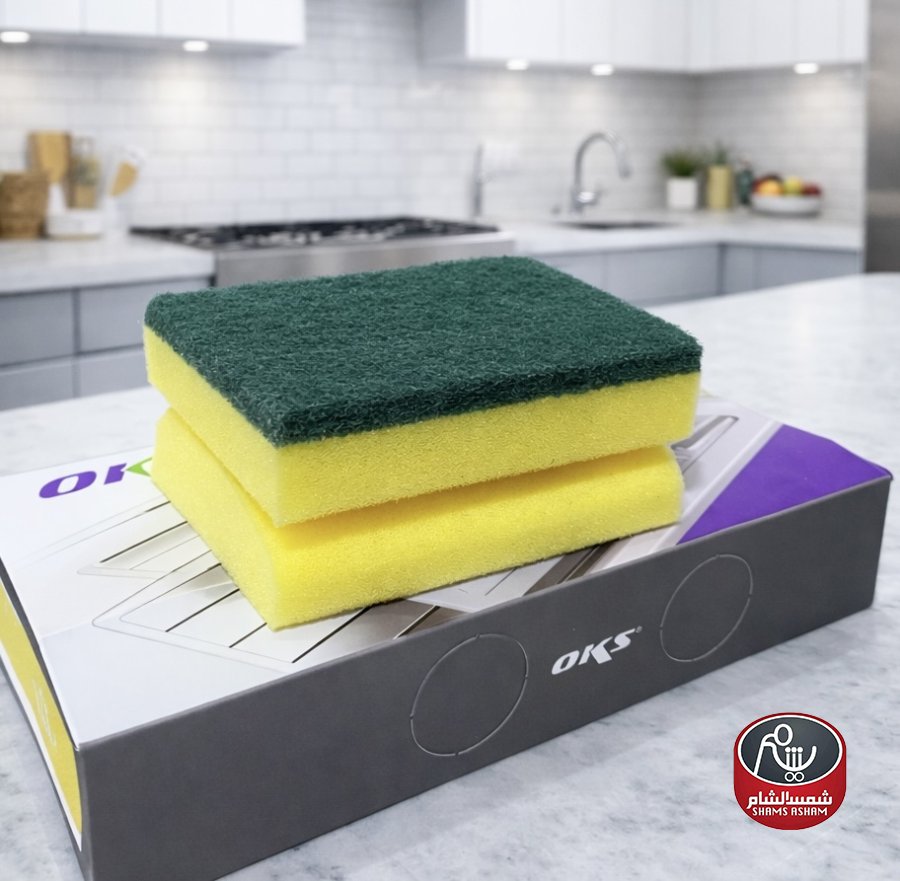 إسفنج جلي OKS عملي بوجهين للتنظيف والفرك، فعّال لإزالة الدهون والأوساخ اليومية دون خدش، مناسب للمطبخ والاستخدام المنزلي، العبوة تحتوي على 3 قطع