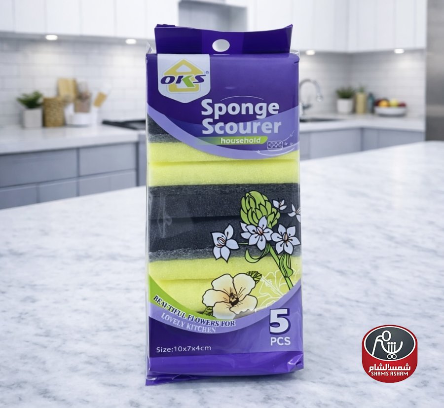 ليف جلي OKS Sponge Scourer بوجهين للتنظيف والفرك، فعّال لإزالة الدهون والأوساخ اليومية مع الحفاظ على الأسطح، مناسب للمطبخ والاستخدام المنزلي، العبوة تحتوي على 5 قطع بحجم عملي