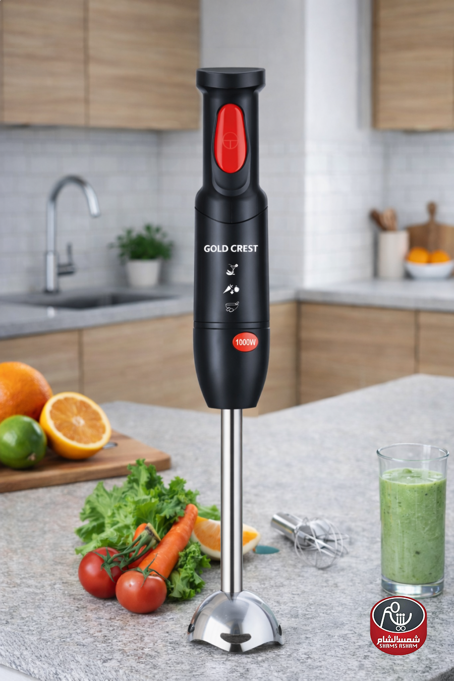 خلاط يدوي عملي بقوة 1000 واط، مزود بشفرات ستانلس ستيل حادة ومقبض مريح، مثالي لتحضير الشوربات، العصائر، الصلصات وطعام الأطفال بسرعة وسهولة