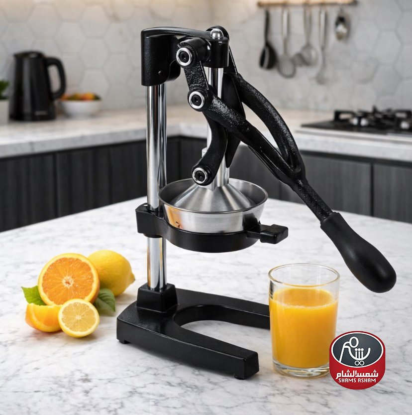 عصّارة يدوية قوية بتصميم عملي وسهل الاستخدام، مصنوعة من هيكل معدني متين مع مصفاة ستانلس ستيل لاستخلاص العصير بكفاءة. مثالية لعصر البرتقال والليمون والرمان بسرعة، بدون كهرباء وبأداء ثابت للاستخدام اليومي