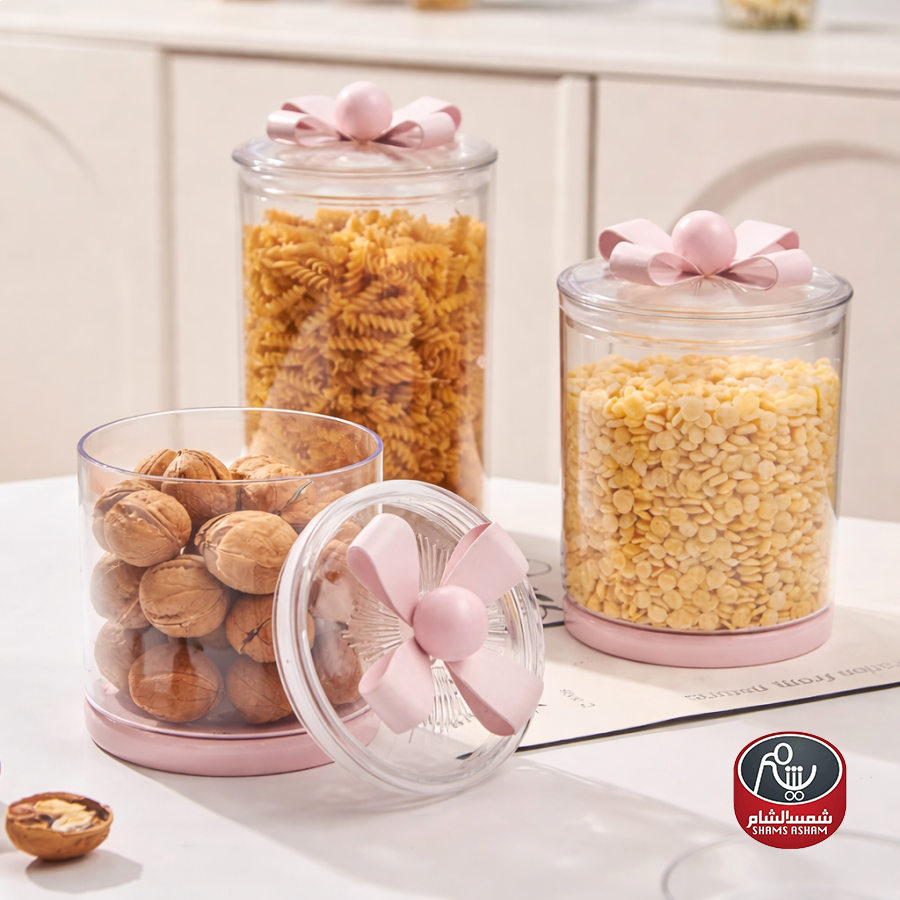 مرتبان بلاستيك شفاف بغطاء محكم تصميم ربطة أنيق، مثالي لحفظ البقوليات والمكسرات والمعكرونة مع الحفاظ على الطزاجة، عملي وسهل التنظيف ويضيف ترتيب وجمال للمطبخ