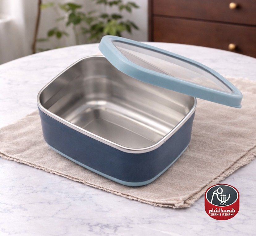 علبة حفظ طعام ستانلس ستيل2.1L عملية بغطاء محكم شفاف، مثالية لحفظ الوجبات والسلطات داخل الثلاجة أو للسفر، مقاومة للصدأ وسهلة التنظيف وتحافظ على الطعام طازجاً لفترة أطول