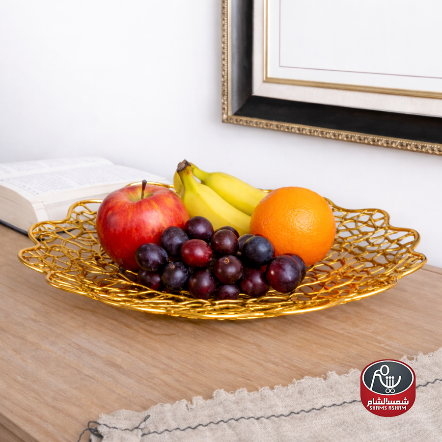 تصميم أنيق بحواف مموجة ولمعة ذهبية فاخرة، مثالي لتقديم الحلويات والفواكه والمكسرات أو كقطعة ديكور على طاولة السفرة