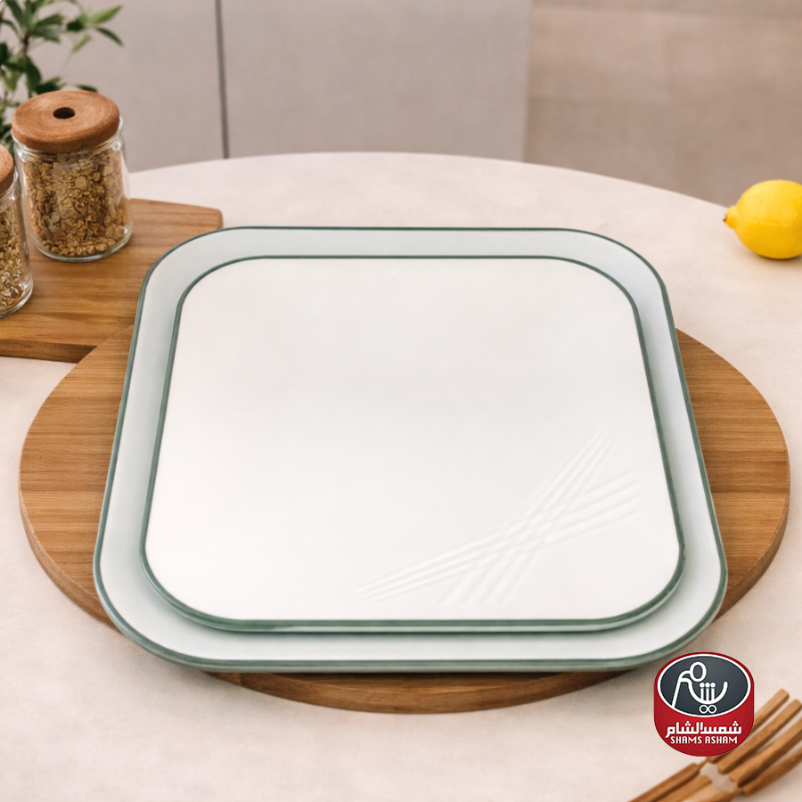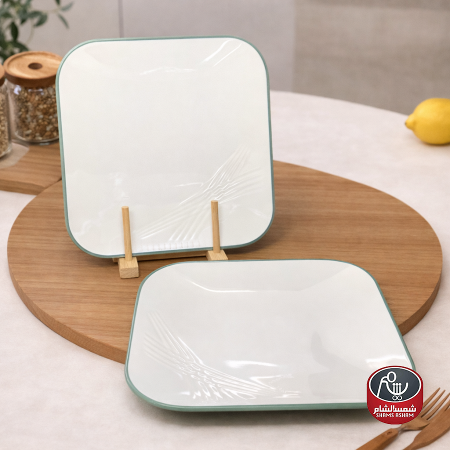 صحن تقديم ميلامين بتصميم مربع أنيق، متين ومقاوم للكسر، مناسب لتقديم المقبلات والحلويات والفواكه للاستخدام اليومي والضيافة، وسهل التنظيف