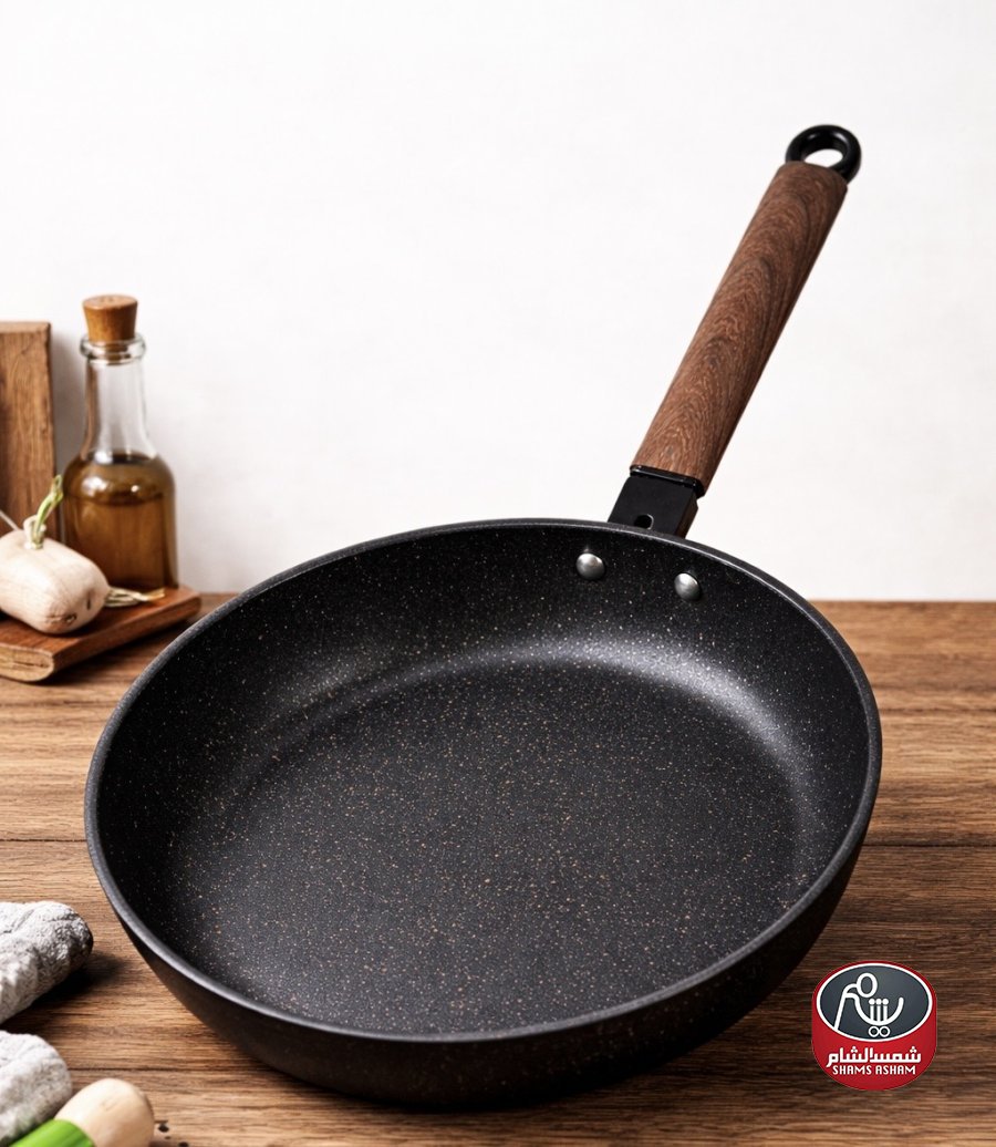 مقلاة ستون بطلاء حجري عالي الجودة، توفر توزيع حرارة ممتاز وطهي صحي دون التصاق. مزودة بمقبض خشبي أنيق ومريح، مثالية للاستخدام اليومي وسهلة التنظيف