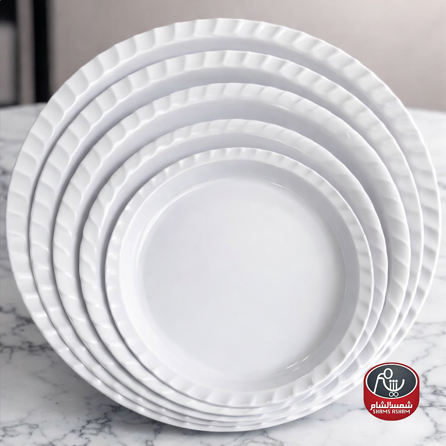 سدر ميلامين دائري أنيق بتصميم عصري وحواف ناعمة، عملي وخفيف الوزن مع متانة عالية للاستخدام اليومي والمناسبات. سهل التنظيف ومقاوم للكسر مقارنة بالزجاج والسيراميك، ويمنحك ترتيب وتقديم أنيق للطعام
