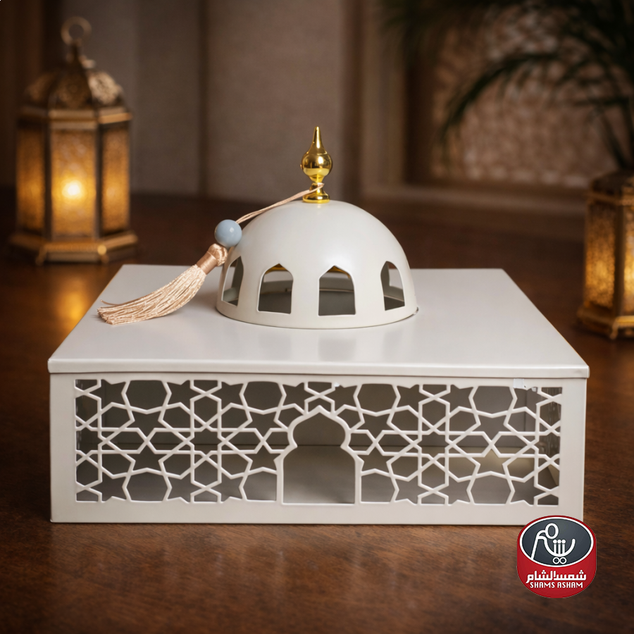 مضيفة رمضانية أنيقة بتصميم مستوحى من شكل المسجد، تجمع بين الجمال والعملية في تقديم التمر أو الحلويات. مصنوعة من هيكل معدني خارجي مزخرف يمنحها طابعًا رمضانيًا فاخرًا، مع حوض داخلي شفاف من الأكريليك لعرض المحتوى بشكل أنيق. تصميمها العملي مع الغطاء يجعلها مثالية للضيافة اليومية وفي عزائم رمضان.
