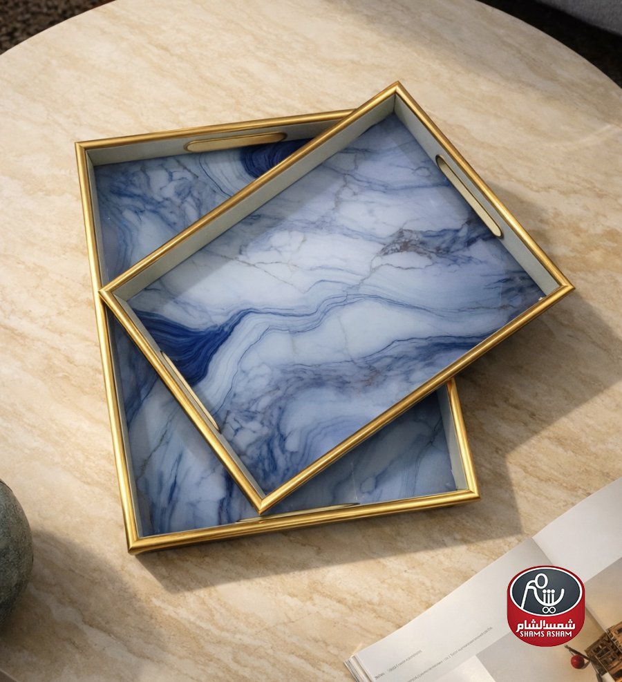 طقم صواني الرخام الأزرق - قطعتين