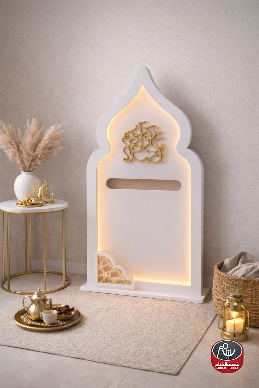 ديكور رمضاني مضيء بتصميم محراب مودرن يضفي لمسة روحانية أنيقة على أي مساحة. يتميز بإضاءة LED دافئة تبرز تفاصيل النقشة والخط العربي بأسلوب راقٍ وهادئ، ليكون قطعة مثالية لزوايا رمضان في المنزل أو المحل. مصنوع بعناية ليجمع بين الطابع الإسلامي الكلاسيكي واللمسة العصرية. الارتفاع: 120 سم �