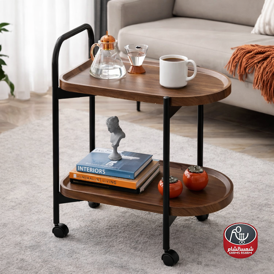 عربة تقديم عملية وأنيقة بتصميم عصري بطبقتين، مثالية لتقديم القهوة والمشروبات أو لتنظيم الأدوات المنزلية. مزودة بعجلات لسهولة الحركة، مع أسطح واسعة توفر استخداماً مريحاً في الضيافة أو الاستخدام اليومي. تصميمها المودرن يضيف لمسة أنيقة لأي مساحة.