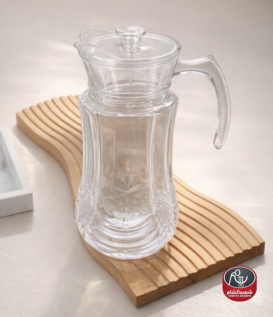 إبريق أنيق بتصميم عملي وعصري، مصنوع من زجاج شفاف عالي الجودة يبرز جمال المشروبات. مزود بغطاء محكم ومقبض مريح لسهولة الاستخدام، مثالي لتقديم الماء، العصائر، أو الشاي البارد على السفرة اليومية أو الضيافة.