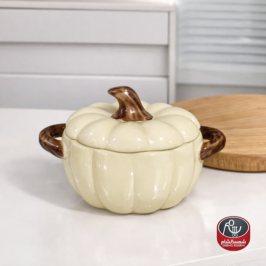 طنجرة بورسلان صغير – شكل يقطينة أوف وايت