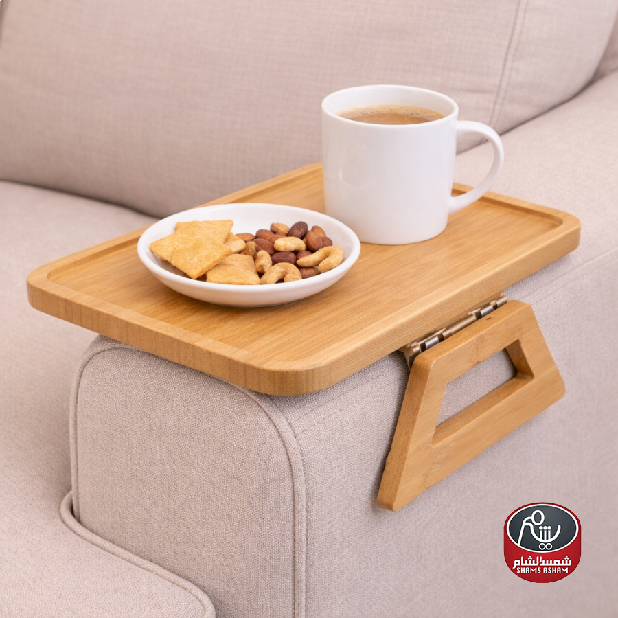تصميم عملي وأنيق يثبت بسهولة على ذراع الكنبة، مثالية لفنجان القهوة والوجبات الخفيفة أثناء الاسترخاء.