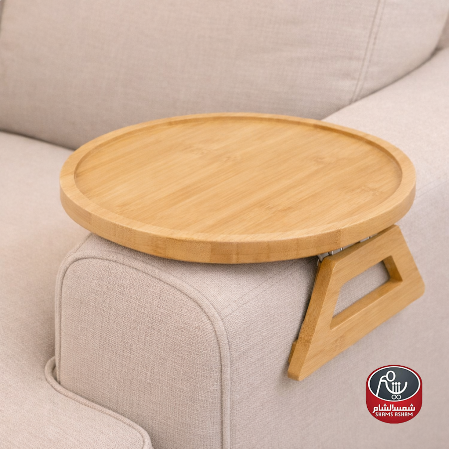 تصميم عصري عملي يثبت بسهولة على ذراع الكنبة، يوفر مساحة مريحة للمشروبات والوجبات الخفيفة أثناء الجلوس.