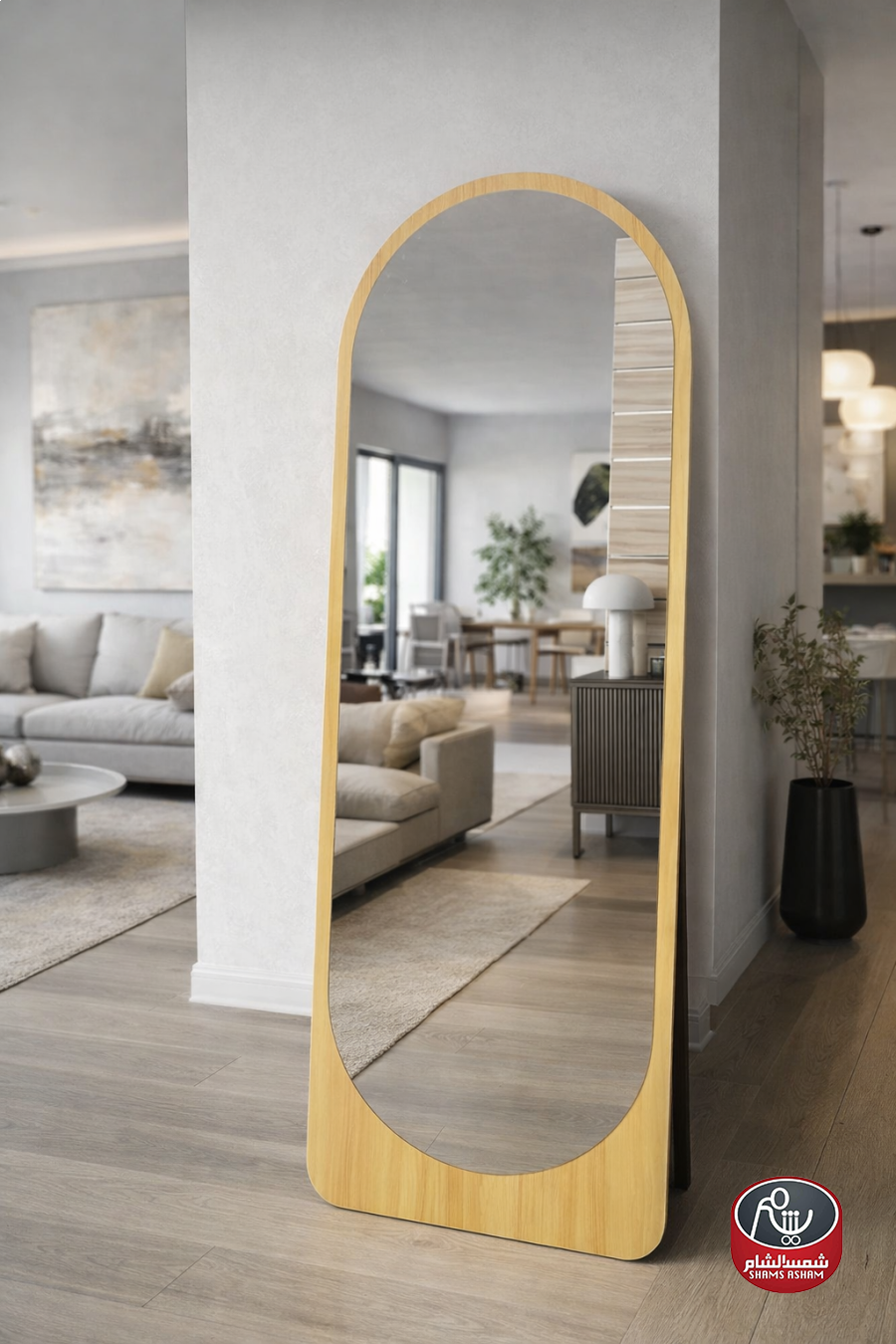 مرآة كاملة الطول بإطار خشبي بلون طبيعي دافئ، تضيف لمسة فخامة وهدوء لأي زاوية في المنزل. مثالية لغرفة النوم، غرفة الملابس أو المدخل، وتعكس الإضاءة لتعطي إحساسًا بالاتساع والجمال في المكان.