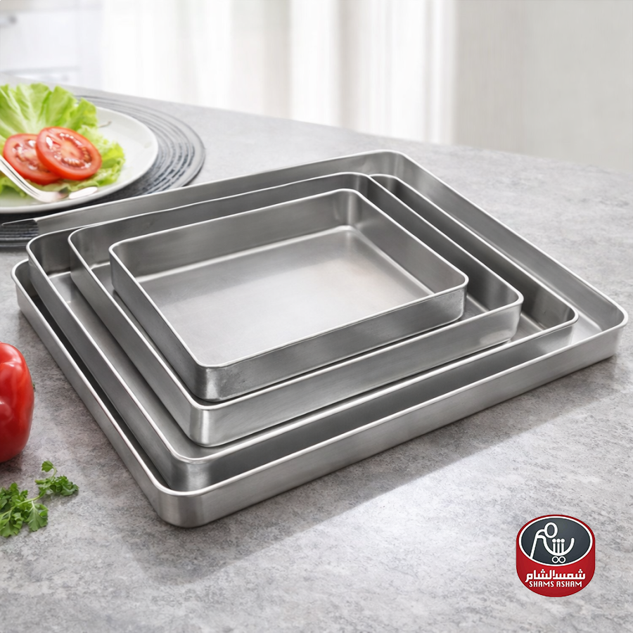 صينية فرن مصنوعة من الألمنيوم الثقيل عالي الجودة، مثالية لخبز الكيك والمعجنات وتحضير مختلف الأطعمة في الفرن. تتميز بمتانتها وقدرتها على توزيع الحرارة بشكل متساوٍ للحصول على نتائج خبز أفضل، مع حواف مرتفعة وتصميم عملي يسهل الاستخدام والتنظيف، مناسبة للاستعمال اليومي في المطبخ