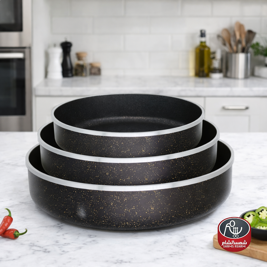 طقم صواني جرانيت عملي وأنيق مصمم لتحمّل الاستخدام اليومي مع توزيع حرارة ممتاز لنتائج طهي متساوية. يتميز بطبقة غير لاصقة عالية الجودة تمنع الالتصاق وتسهّل التنظيف، مع تصميم متين ومريح يناسب مختلف أنواع الأفران. يأتي بثلاثة أحجام مختلفة لتلبية جميع احتياجاتك في المطبخ، سواء للطبخ اليومي أو العزائم. خيار مثالي لكل بيت يبحث عن الجودة والشكل العصري في نفس الوقت