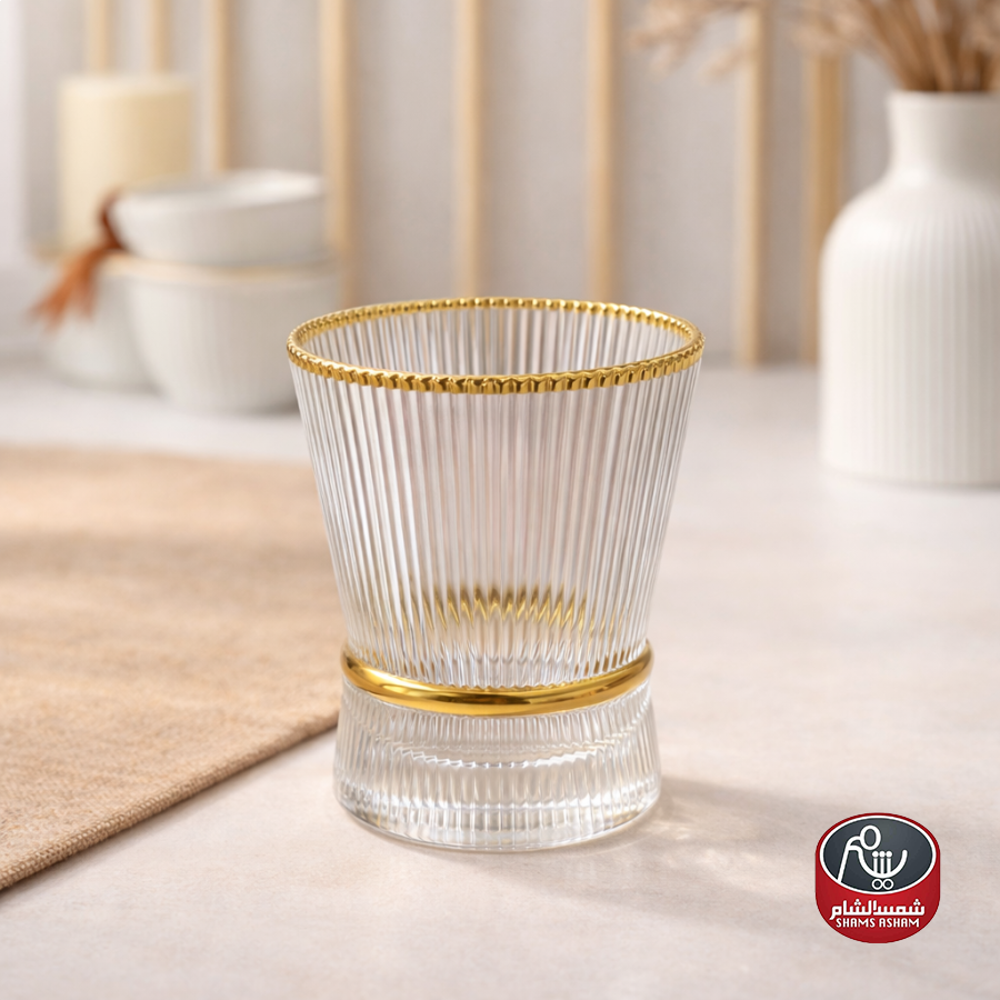 طقم كاسات زجاجية أنيقة مكوّن من 12 قطعة، تصميم فاخر بنقشة مميزة يمنح لمسة راقية لكل ضيافة،