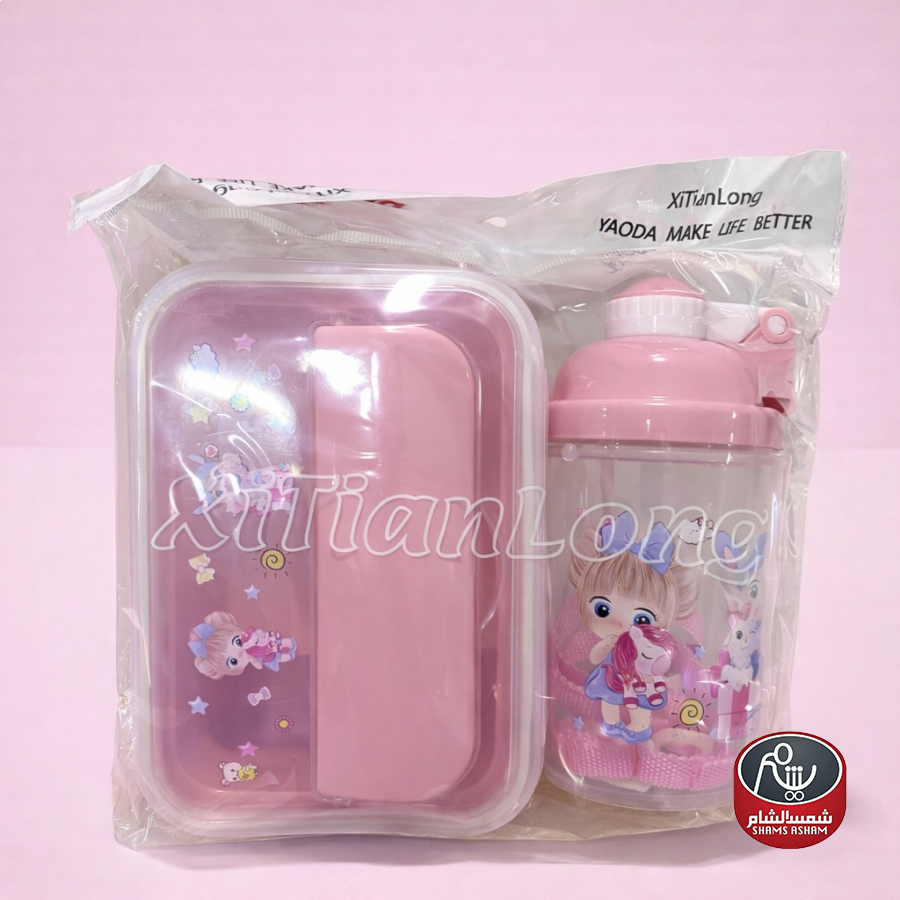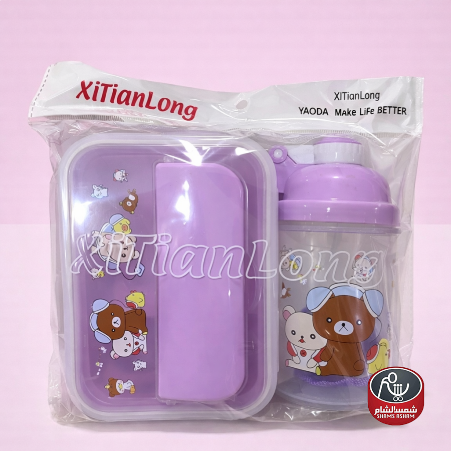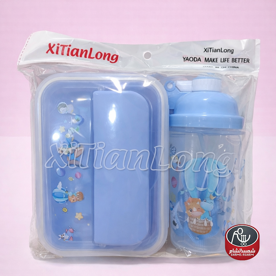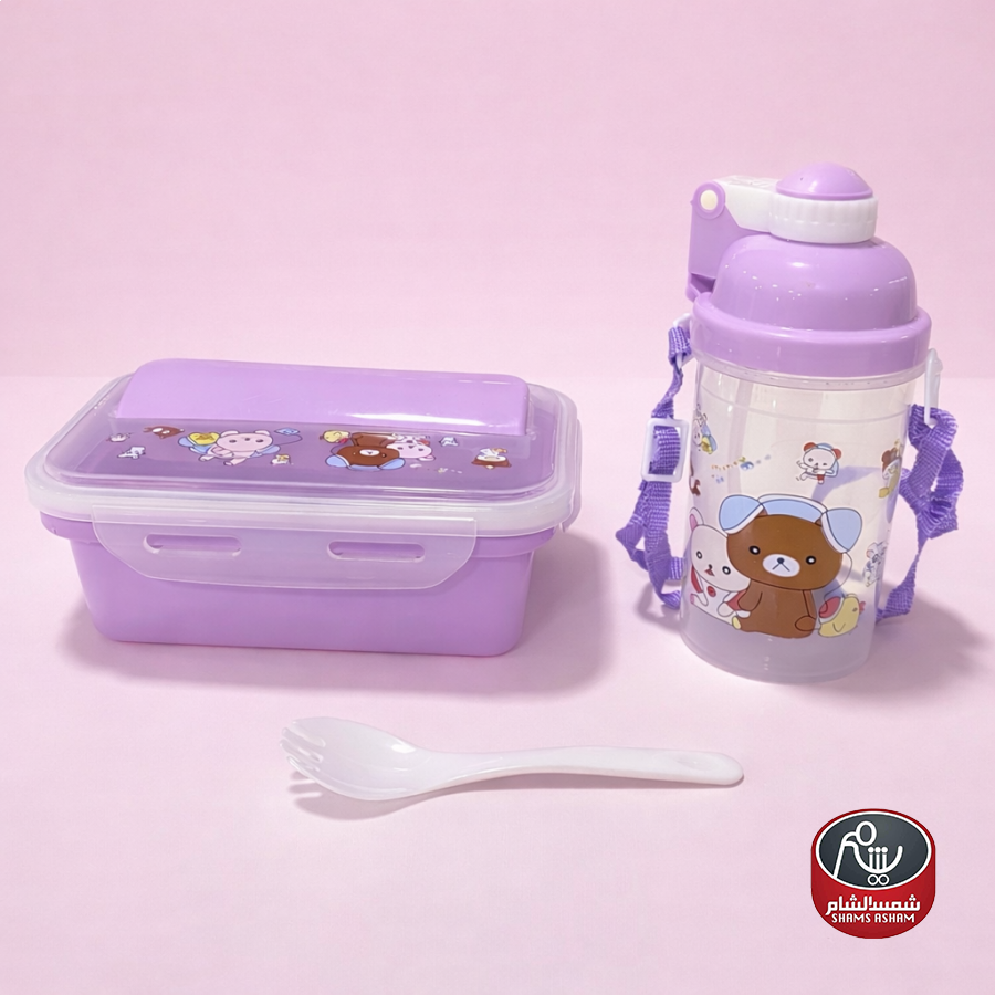 طقم لانش بوكس مع قنينة وملعقة، تصميم عملي وخفيف مثالي للمدرسة أو الرحلات، بإغلاق محكم وسهل الاستخدام